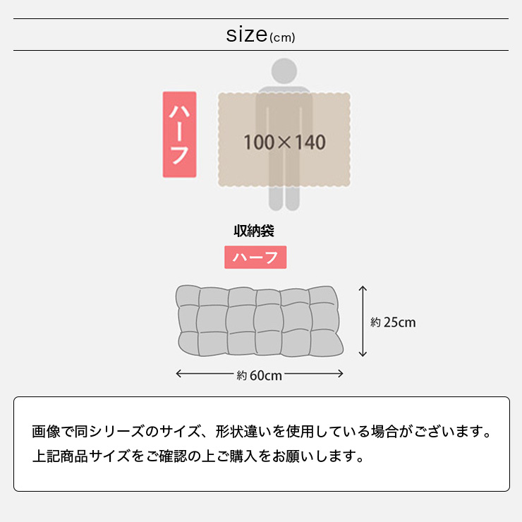 サイズ | 毛布:約 W100 x D140cm 収納袋:約 W60 x D25cm |