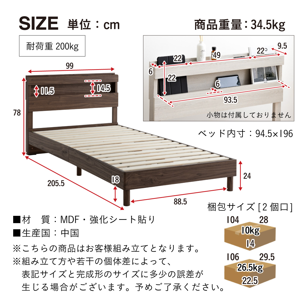 | 梱包(2個口) | サイズ:W104 x D28 x H14cm(10kg)/W106 x D29.5 x H22.5cm(26.5kg) |