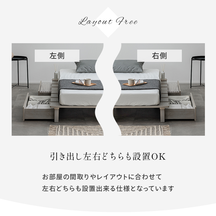 | ステージベッド+専用引き出し 2杯セット Soares(ソアレ) 【ステージベッドソアレ】と【ソアレ専用引き出し】のセットページとなります。 お部屋をすっきり保ちたい方のために、ベッド下を収納スペースとして活かせる引き出しをセットにしました。 ■専用引き出しで収納アップ! 季節ものの寝具やお洋服などたっぷり収納可能となっています。 キャスター付き引き出しで出し入れスムーズ! ■組み合わせで、グッと統一感が! 無駄な装飾がない取っ手レスデザイン ■引き出し左右どちらも設置OK お部屋の間取りやレイアウトに合わせて左右どちらも設置できる仕様となっています。 ※こちらの商品はお客様組み立てとなります。 ※こちらの商品はステージベッド+引き出しのセット販売となります。 ※引き出しを開閉する際は、指を挟まないようご注意ください。 ※組み立て方や若干の個体差によって、表記サイズと完成形のサイズに多少の誤差が生じる場合がございます。予めご了承ください。 | |