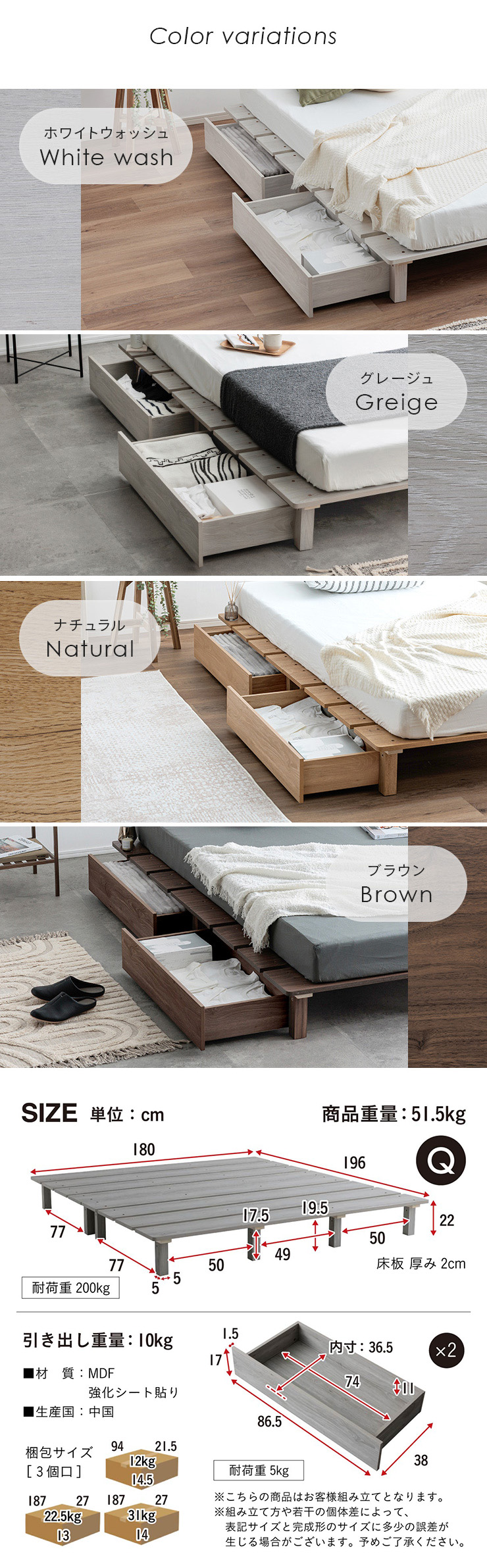 | カラー | ホワイトウォッシュ・グレージュ・ナチュラル・ブラウン |