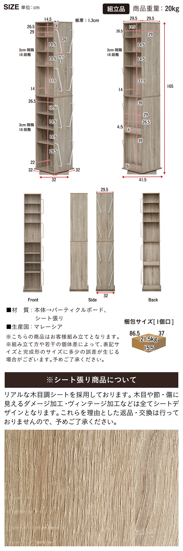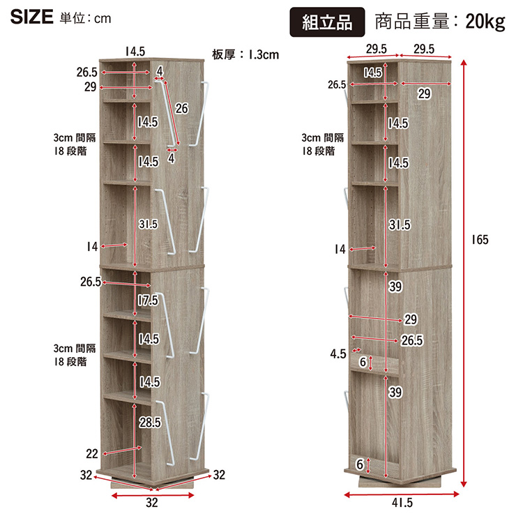 | サイズ | W32 x D32 x H165cm |