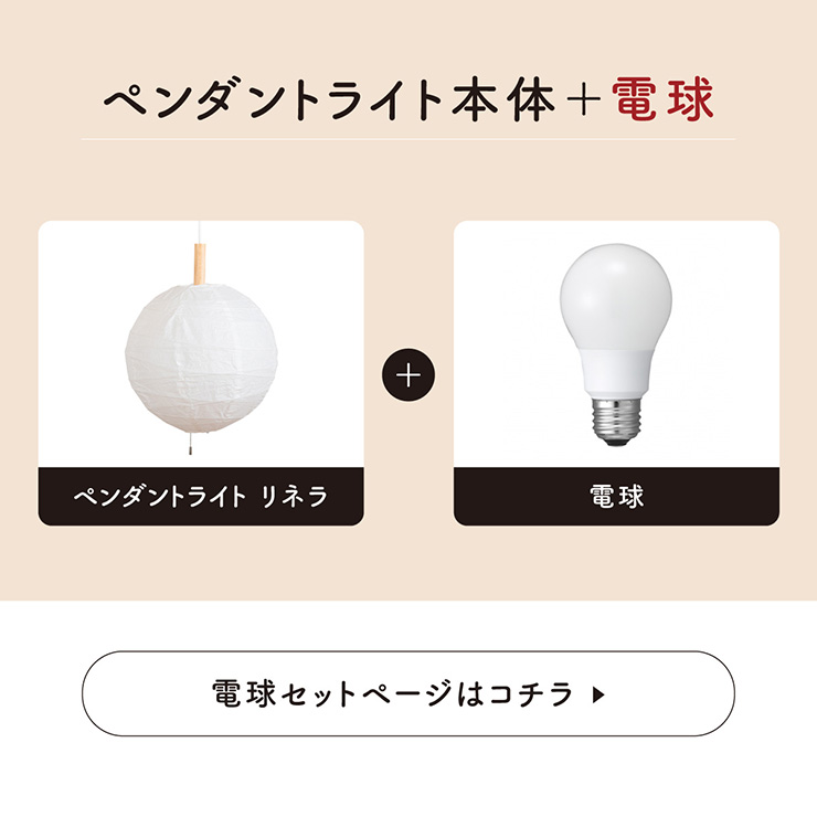 | LED電球専用 ペンダントライト Linella(リネラ) 和のミニマリズム 心ほどける時間 無駄を削ぎ落した提灯の美しいフォルムは、まさに“和のミニマリズム”を体現しています。 シンプルでありながら空間に確かな存在感を与え、和室はもちろん、モダンな洋室にもすっと馴染む静謐な美しさが魅力です。 ■和とモダンを融合したデザイン 提灯という伝統的な形でありながらシンプルで丸いシェードは、和室だけでなく北欧テイストや、モダンな洋室にも違和感なく溶け込む和モダンなデザインです。 ■コードの長さを調節可能 コード長さを自由に調節できるから、天井の高さに合わせてベストな配置が可能 ■LED電球で省エネ LED電球専用ライトだから、あかるさを確保しながら電気代も抑えられます。 ■柔らかな「癒しの光」 紙のシェードが光をやわらかく拡散し、ふんわりとした温かみのある光がお部屋全体に広がります。柔らかな癒しの光で、リラックスできるお部屋にしてくれます。 ■電球 ・口金:E26 ・定格消費電力:13W以下(※明るさ60W相当以下) ・定格電圧:100V ・この器具はLED電球専用です。 ・白熱電球や蛍光灯電球は使用できません。 ・電球は付属しておりません。 ・電球をご購入される前に、必ずロ金・ワット数のご確認をお願いいたします。 ・調光調色機能付き電球やリモコン付き電球などは対応可能です。 ■引掛けシーリング 一般的なご家庭に設置されている、下記のいずれかのシーリングがあれば、特別な工具や工事なしで簡単に取り付けが可能です。 ・角型引掛けシーリング ・丸型引掛けシーリング ・丸型フル引掛けシーリング ・フル引掛けシーリング ・引掛け埋込ローゼット ※シーリングが設置されていない場合は、別途電気工事が必要になります。 ※種類によっては、シーリングカバー内に完全に収まらない場合があります。ご了承ください。 ■取り付け場所 次のような天井には取り付けないでください。 ・突出部のある天井 ・たわみやすい天井、補強のない薄い天井(ベニヤ板、石膏ボードなど) ・傾斜した天井 ・凸凹のある天井 ※指定以外の場所に取り付けると、火災・落下などの原因になります。 調光機能がついた壁スイッチには取り付けできません。 ※火災の原因になるため、一般のスイッチに交換する取り付けないでください。 ■ダクトレールでもご使用可能〇 ダクトレールとダクトレール専用の変換プラグは別途ご用意ください。 ※電球は付属しておりません。 ※電気用品安全法(PSE法)および日本の安全規格に適合した製品です。 ※本製品のシェードは紙素材を使用しているため、貼り合わせ部分の幅やしわに個体差がございます。また、製造過程上、接着部分がわずがに変色して見える場合がございます・素材の特性として予めご了承ください。 | |