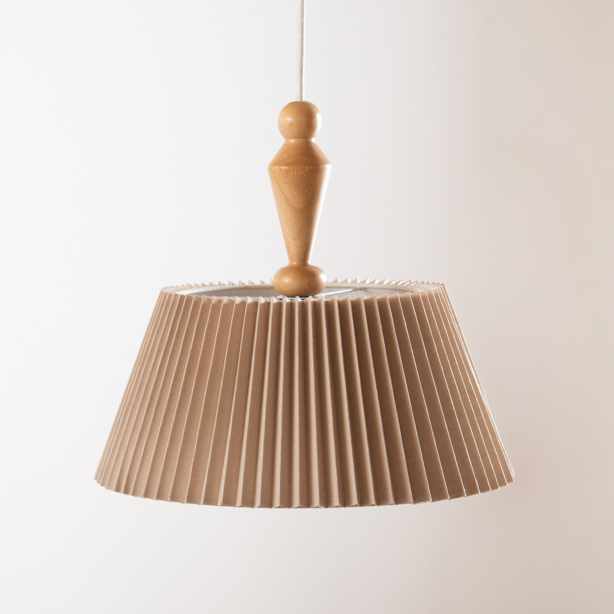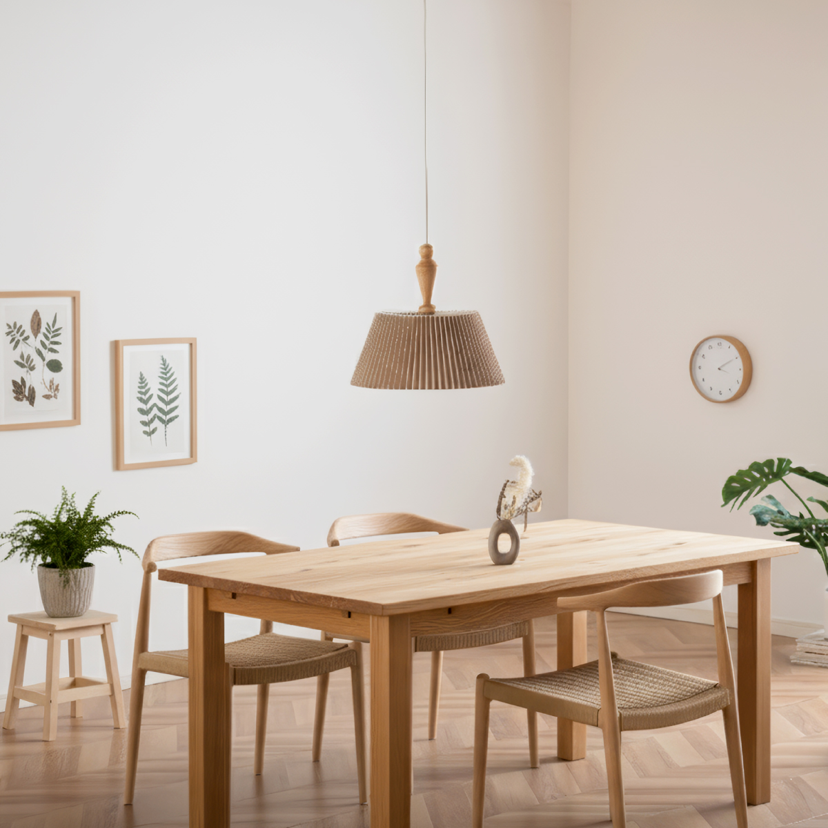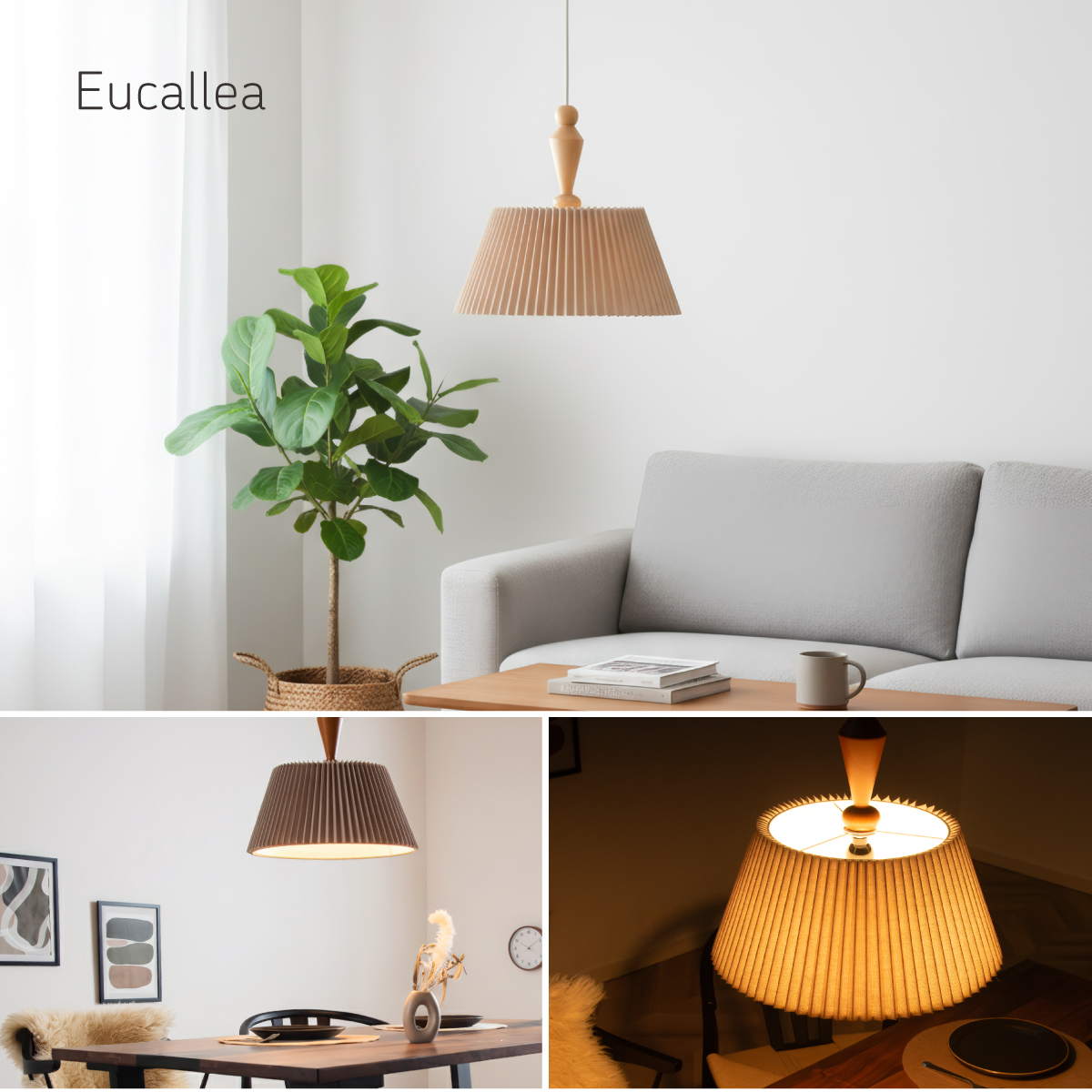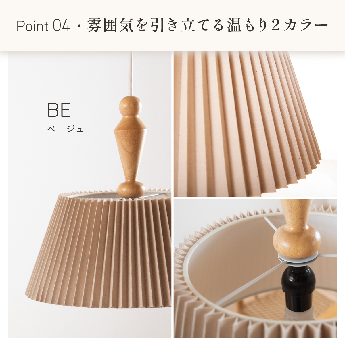 | LED電球専用 ペンダントライト Eucallea(ユーカレア) やさしい灯りで、暮らしに北欧のぬくもりを やわらかな光が、部屋全体をふんわりと包み込み、天然木とプリーツシェードの組み合わせが、心地よいぬくもりを演出。 日常のひとときを、北欧のカフェのように穏やかに。シンプルでいて、どんな空間にも優しく馴染む照明です。 ■素朴な木の質感と優しいプリーツシェード 天然木と些細なプリーツシェードが調和し、点灯すると柔らかい光がシェードを通してやさしく広がります。 どこか懐かしく、ほっと落ち着くような雰囲気を演出してくれます。 ■コードの長さを調節可能 コード長さを自由に調節できるから、天井の高さに合わせてベストな配置が可能 ■LED電球で省エネ LED電球専用ライトだから、あかるさを確保しながら電気代も抑えられます。 ■電球 ・口金:E26 ・定格消費電力:13W以下(※明るさ60W相当以下) ・定格電圧:100V ・この器具はLED電球専用です。 ・白熱電球や蛍光灯電球は使用できません。 ・電球は付属しておりません。 ・電球をご購入される前に、必ずロ金・ワット数のご確認をお願いいたします。 ・調光調色機能付き電球やリモコン付き電球などは対応可能です。 ■引掛けシーリング 一般的なご家庭に設置されている、下記のいずれかのシーリングがあれば、特別な工具や工事なしで簡単に取り付けが可能です。 ・角型引掛けシーリング ・丸型引掛けシーリング ・丸型フル引掛けシーリング ・フル引掛けシーリング ・引掛け埋込ローゼット ※シーリングが設置されていない場合は、別途電気工事が必要になります。 ※種類によっては、シーリングカバー内に完全に収まらない場合があります。ご了承ください。 ■取り付け場所 次のような天井には取り付けないでください。 ・突出部のある天井 ・たわみやすい天井、補強のない薄い天井(ベニヤ板、石膏ボードなど) ・傾斜した天井 ・凸凹のある天井 ※指定以外の場所に取り付けると、火災・落下などの原因になります。 調光機能がついた壁スイッチには取り付けできません。 ※火災の原因になるため、一般のスイッチに交換する取り付けないでください。 ■ダクトレールでもご使用可能〇 ダクトレールとダクトレール専用の変換プラグは別途ご用意ください。 ※電球は付属しておりません。 ※電気用品安全法(PSE法)および日本の安全規格に適合した製品です。 ※本商品のシェードは、風合いを活かしたファブリック(布)を使用しています。繊維の小さな節や色ムラ、わずかな点のような斑点が見られる場合があります。生産工程上の個体差となりますので、不良ではございません。素材本来の質感を生かしたデザインとしてお楽しみください。 | |