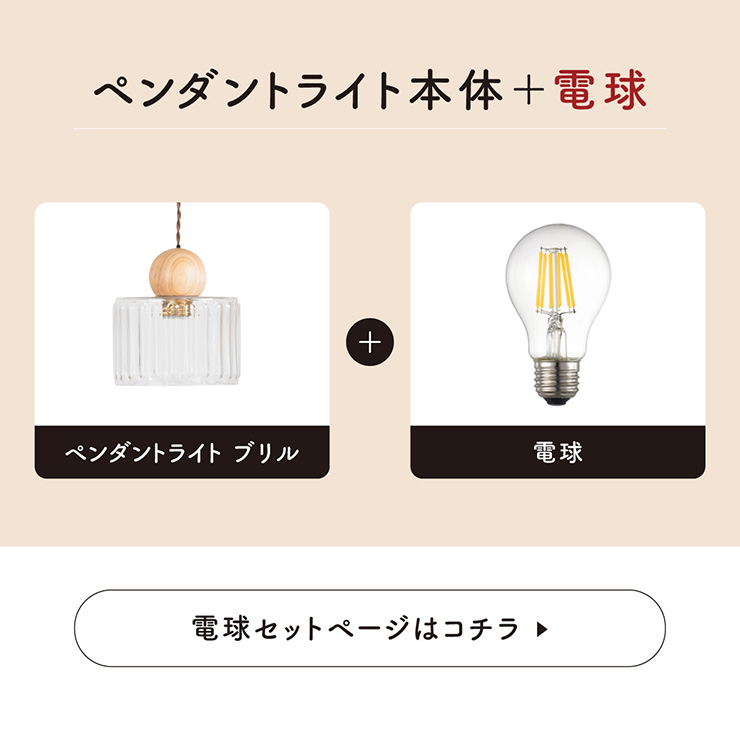 | LED電球専用 ペンダントライト Brill(ブリル) レトロとモダンを掛け合わせた“縦モールガラス” 縦ラインが入ったクリアガラスシェードに、丸い天然木パーツを組み合わせた、上品でコンパクトなペンダントライト。 レトロ感と北欧モダンがほどよくミックスされたデザインは、今のインテリアトレンドにもぴったりです。 ■彫刻のようなガラスシェード 縦ラインの入ったモールガラスは、昔からレトロ照明によく使われるデザイン。 雰囲気はそのままに、サイズや形を今風に整え、どんなインテリアにも合わせやすいモダンな印象に仕上げました。 ■コードの長さを調節可能 コード長さを自由に調節できるから、天井の高さに合わせてベストな配置が可能 ■LED電球で省エネ LED電球専用ライトだから、あかるさを確保しながら電気代も抑えられます。 ■存在感はしっかり コンパクトなのにしっかりとした存在感。キッチン、ダイニング、玄関、トイレにも〇 小ぶりだけど光の表現が豊かで、「ちょっと良い雰囲気」を作れる名品です。 ■電球 ・口金:E26 ・定格消費電力:13W以下(※明るさ60W相当以下) ・定格電圧:100V ・この器具はLED電球専用です。 ・白熱電球や蛍光灯電球は使用できません。 ・電球は付属しておりません。 ・電球をご購入される前に、必ずロ金・ワット数のご確認をお願いいたします。 ・調光調色機能付き電球やリモコン付き電球などは対応可能です。 ■引掛けシーリング 一般的なご家庭に設置されている、下記のいずれかのシーリングがあれば、特別な工具や工事なしで簡単に取り付けが可能です。 ・角型引掛けシーリング ・丸型引掛けシーリング ・丸型フル引掛けシーリング ・フル引掛けシーリング ・引掛け埋込ローゼット ※シーリングが設置されていない場合は、別途電気工事が必要になります。 ※種類によっては、シーリングカバー内に完全に収まらない場合があります。ご了承ください。 ■取り付け場所 次のような天井には取り付けないでください。 ・突出部のある天井 ・たわみやすい天井、補強のない薄い天井(ベニヤ板、石膏ボードなど) ・傾斜した天井 ・凸凹のある天井 ※指定以外の場所に取り付けると、火災・落下などの原因になります。 調光機能がついた壁スイッチには取り付けできません。 ※火災の原因になるため、一般のスイッチに交換する取り付けないでください。 ■ダクトレールでもご使用可能〇 ダクトレールとダクトレール専用の変換プラグは別途ご用意ください。 ※電球は付属しておりません。 ※電気用品安全法(PSE法)および日本の安全規格に適合した製品です。 ※本製品のガラス部分には、製造工程上、小さな気泡やゆがみが生じる場合がございます。こちらはガラス製品特有の風合いであり、不良品ではございません。一点ずつ異なる表情をお楽しみいただければ幸いです。 ※部分によってガラスの厚みが異なる場合がございます。 | |