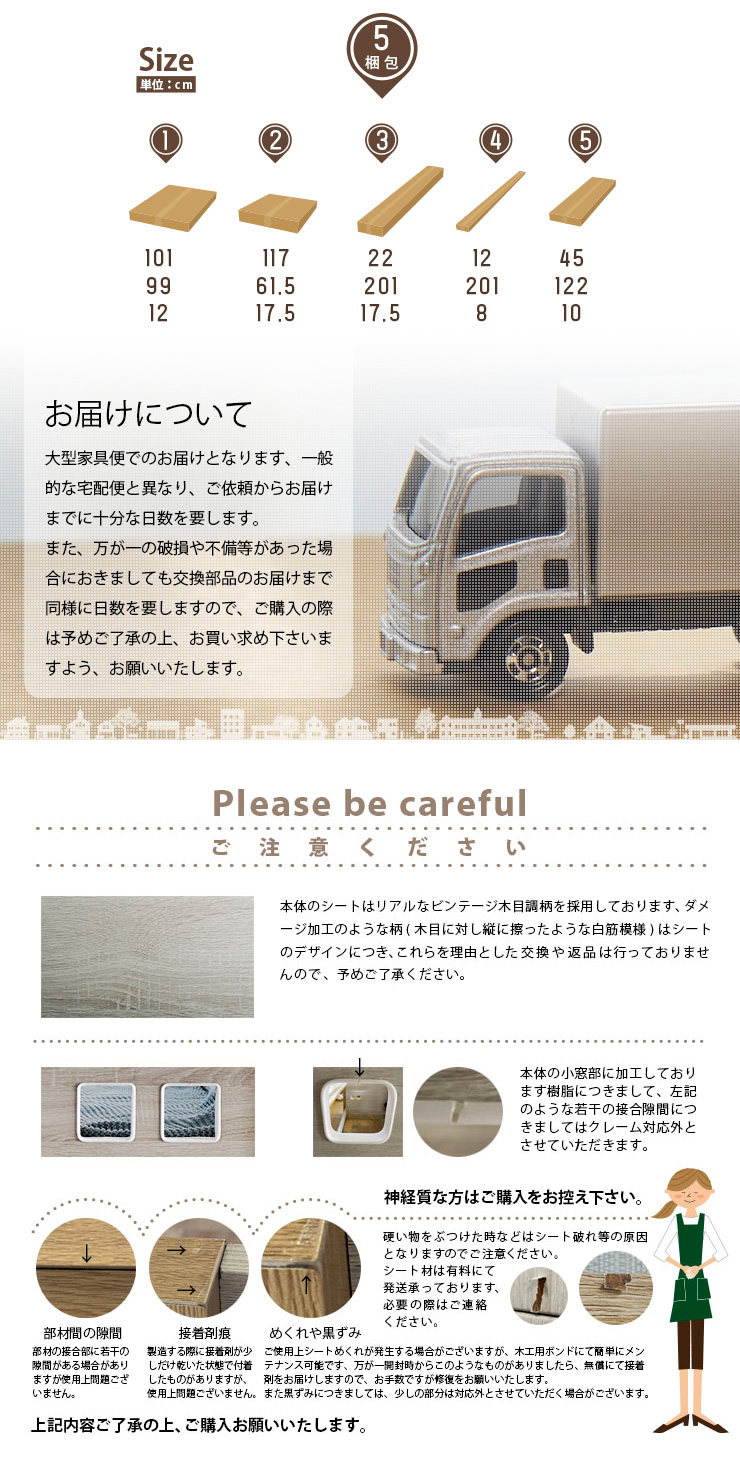 ●お客様都合による返品・交換はお受けできませんので、十分ご検討の上ご注文ください。また、モニター環境による色味の差異やイメージ違い、搬入経路の確認不足による搬入不可の場合も返品・交換はできませんので、商品サイズと搬入経路を事前にご確認ください。