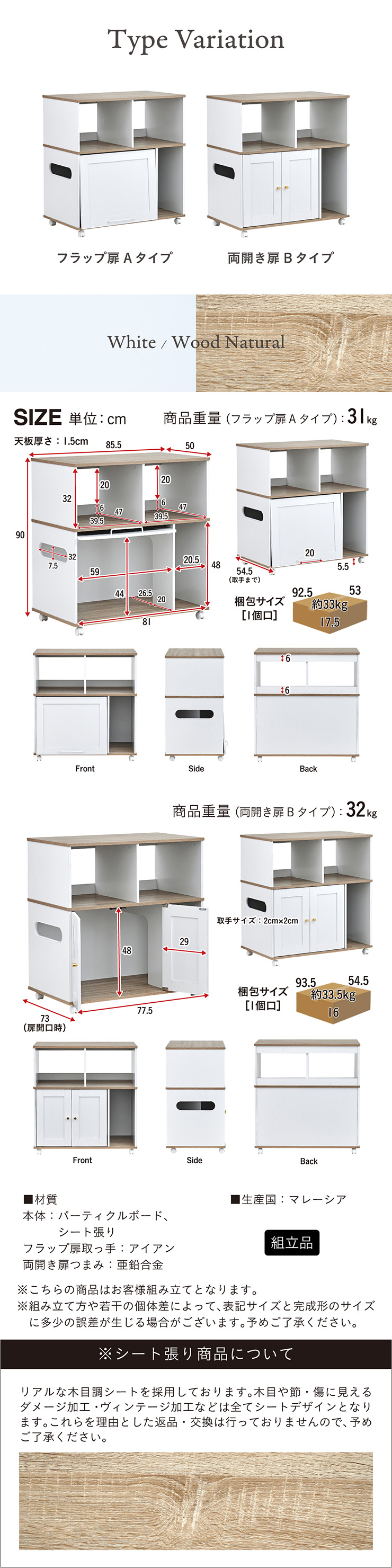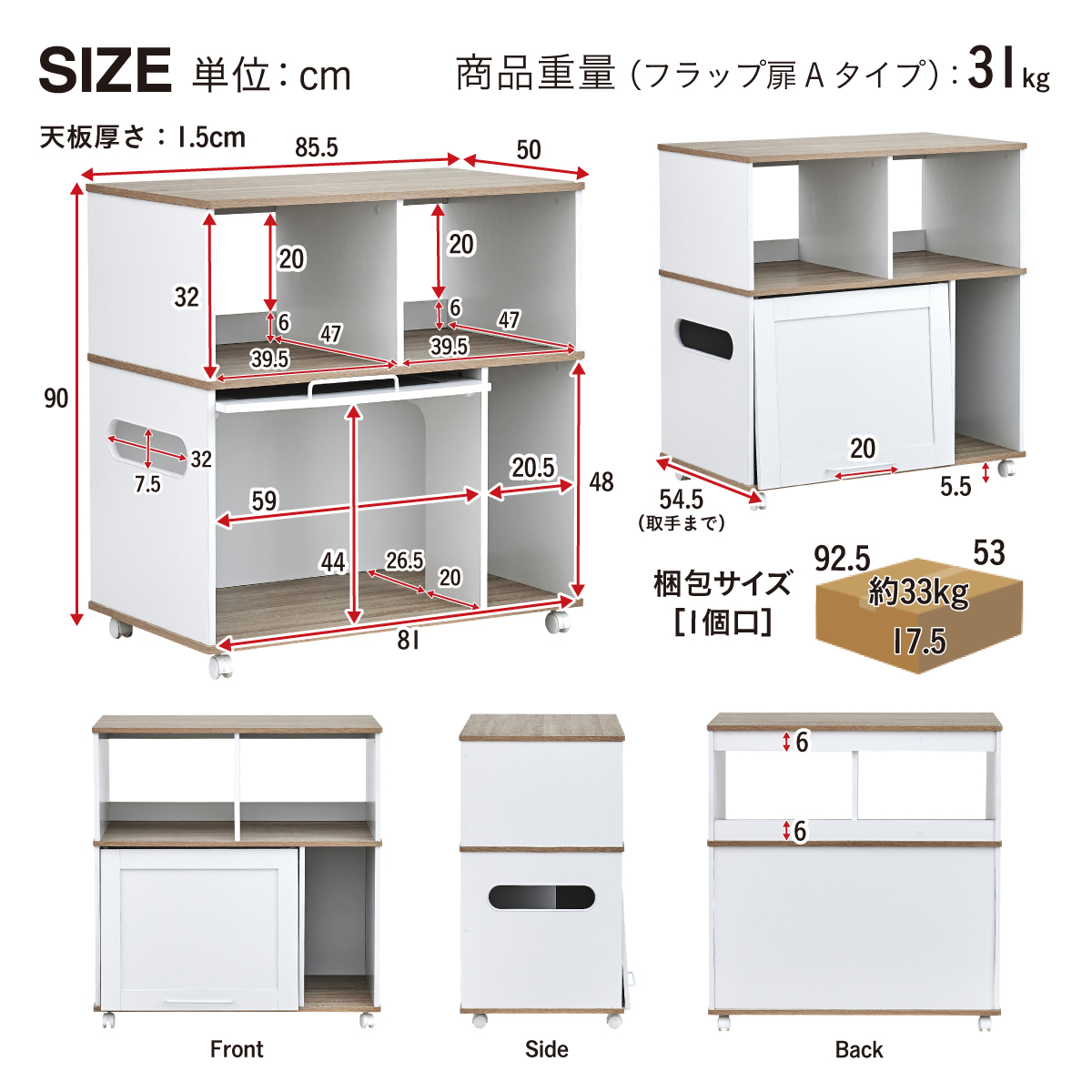 | 商品サイズ | 約W85.5 x D50 x H90cm 商品重量:31kg(Aタイプ)・32kg(Bタイプ) |