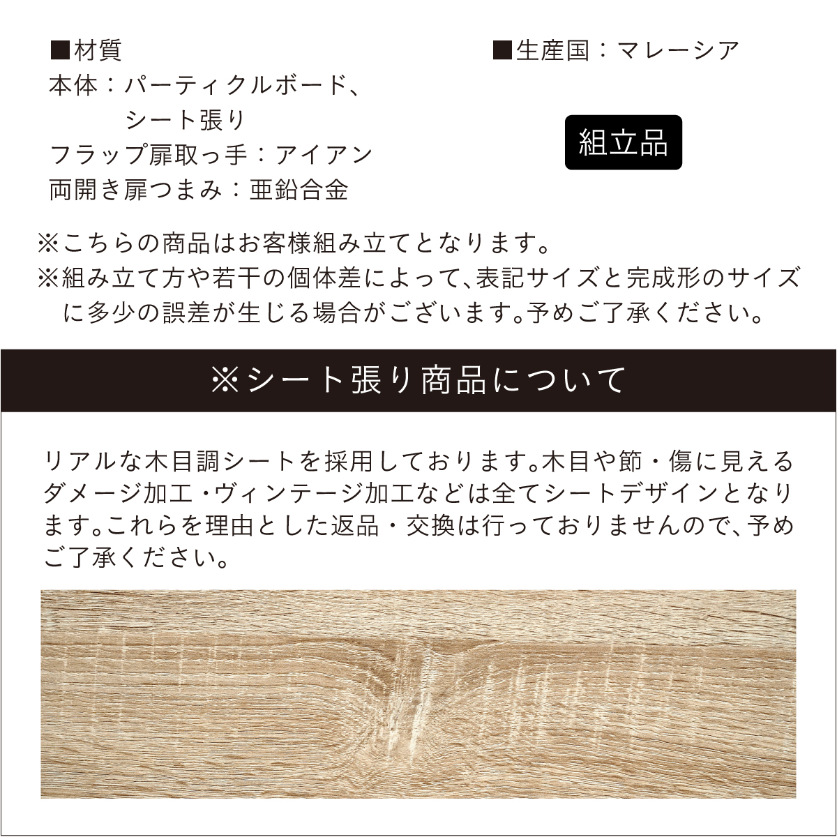 | 材質・素材 | 本体:パーティクルボード・シート貼り Aタイプ扉取っ手:アイアン Bタイプ扉つまみ:亜鉛合金 |