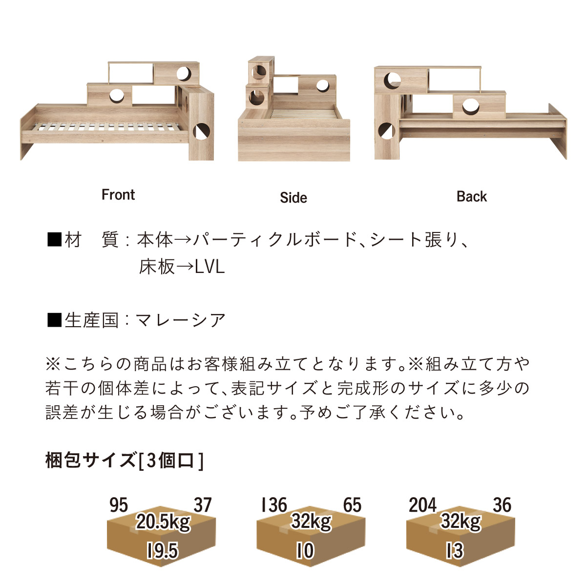 | 材質・素材 | 本体:パーティクルボード・シート貼り 床板:LVL |