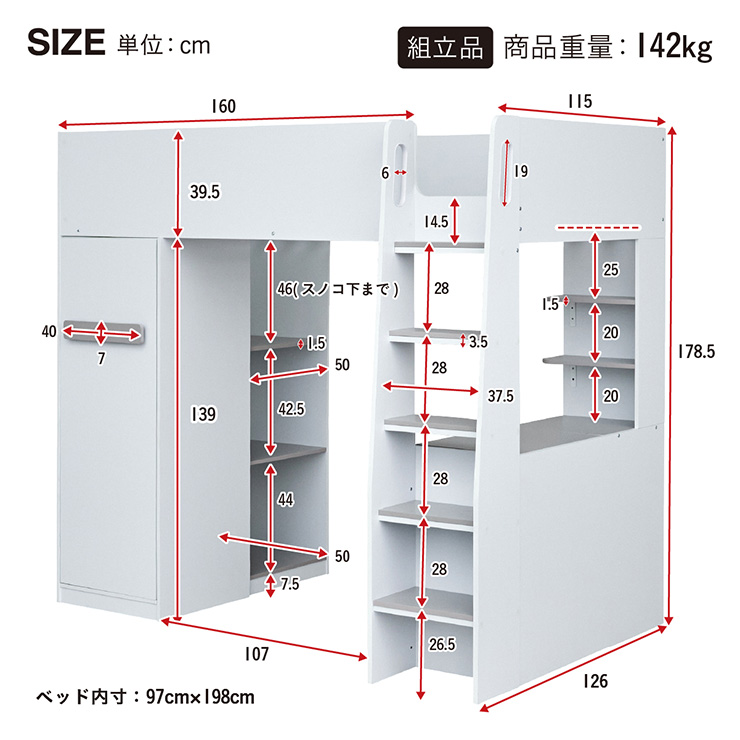 | 材質・素材 | 本体:パーティクルボード・シート貼り 床板:LVL |