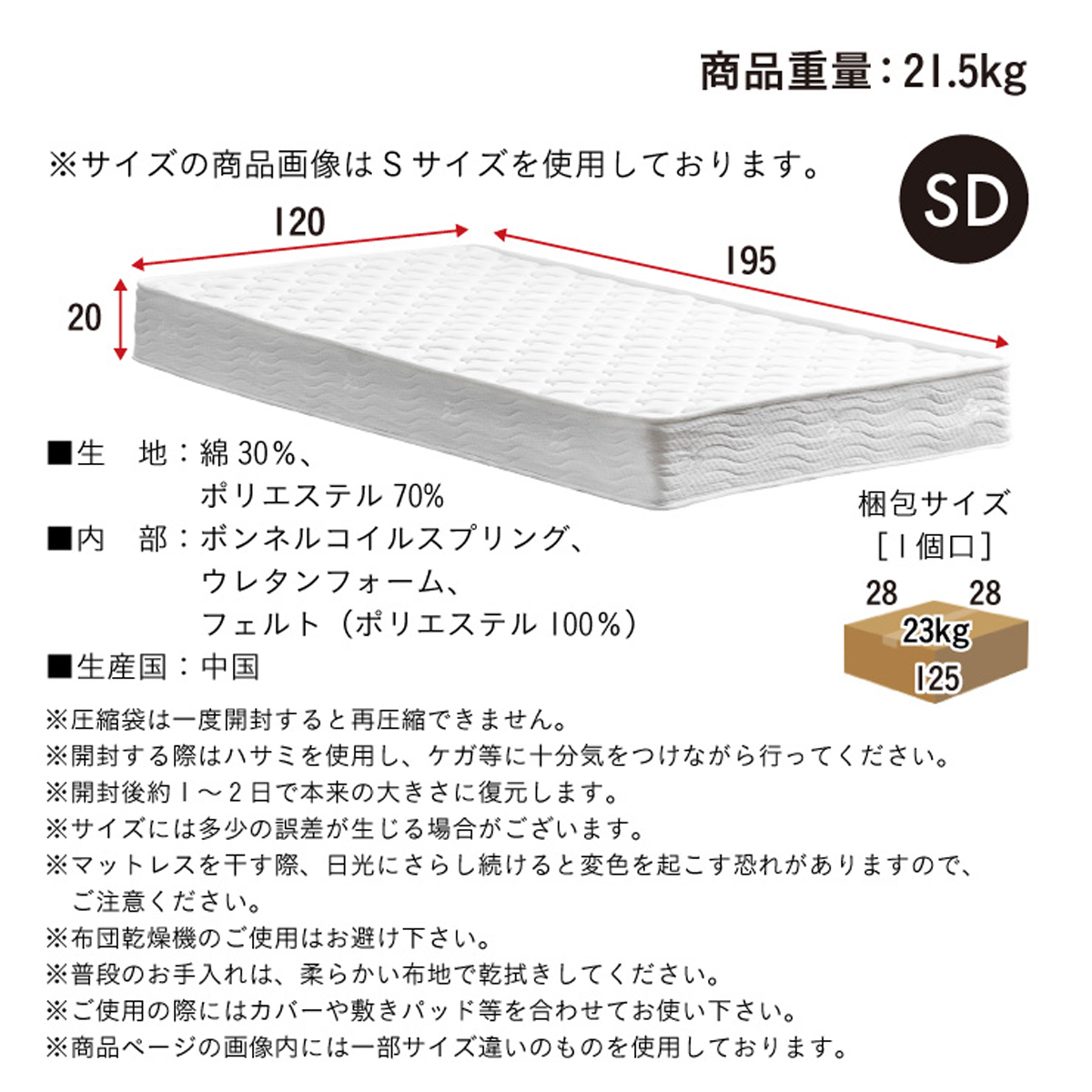 | 材質・素材 | MDF・強化シート貼り 【マットレス】 生地:綿30%・ポリエステル70% 内部:ボンネルコイルスプリング・ウレタンフォーム・フェルト(ポリエステル100%) |