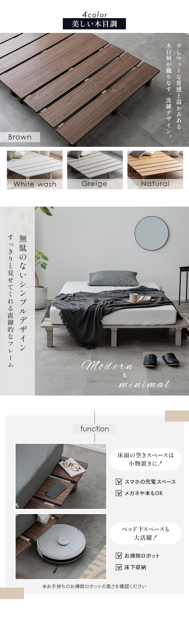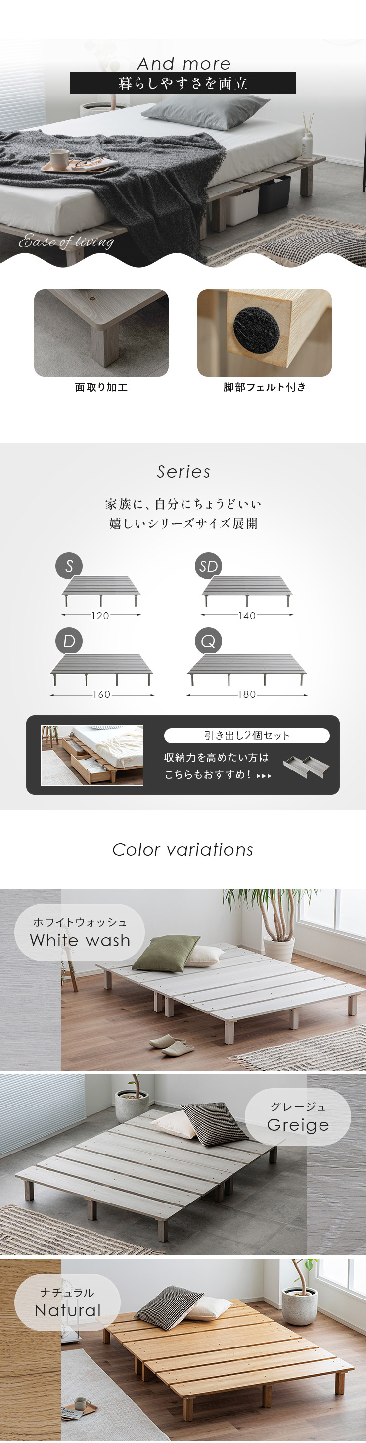 | カラー | ベッド:ホワイトウォッシュ・グレージュ・ナチュラル・ブラウン マットレス:ホワイト |