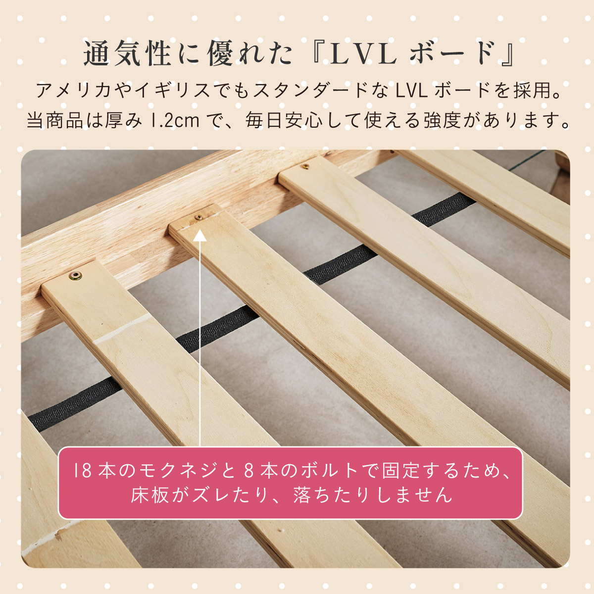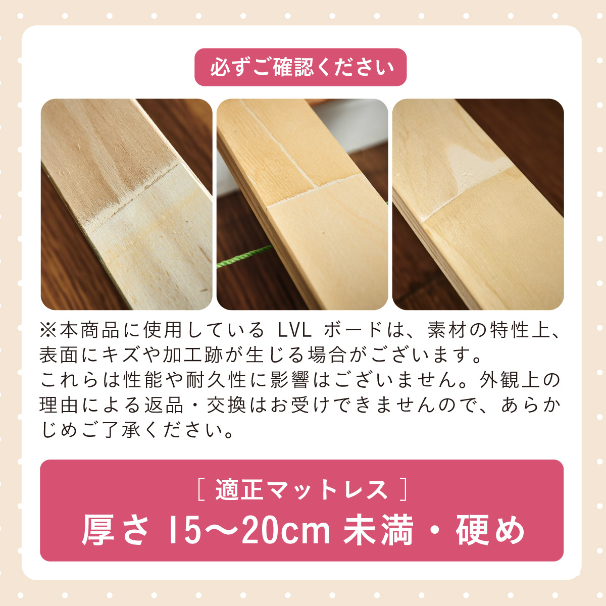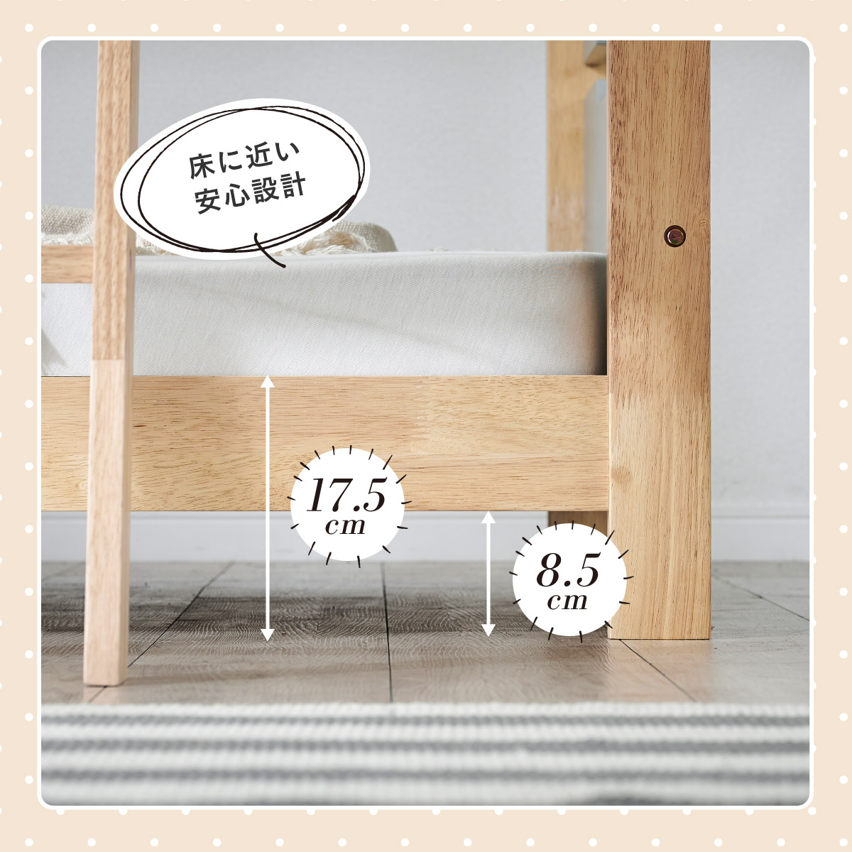 | 材質・素材 | ベッド:ラバーウッド材・MDF(ラッカー塗装) マットレス:生地(ポリエステル99%・ウレタン1%)・内部(ウレタンフォーム) |