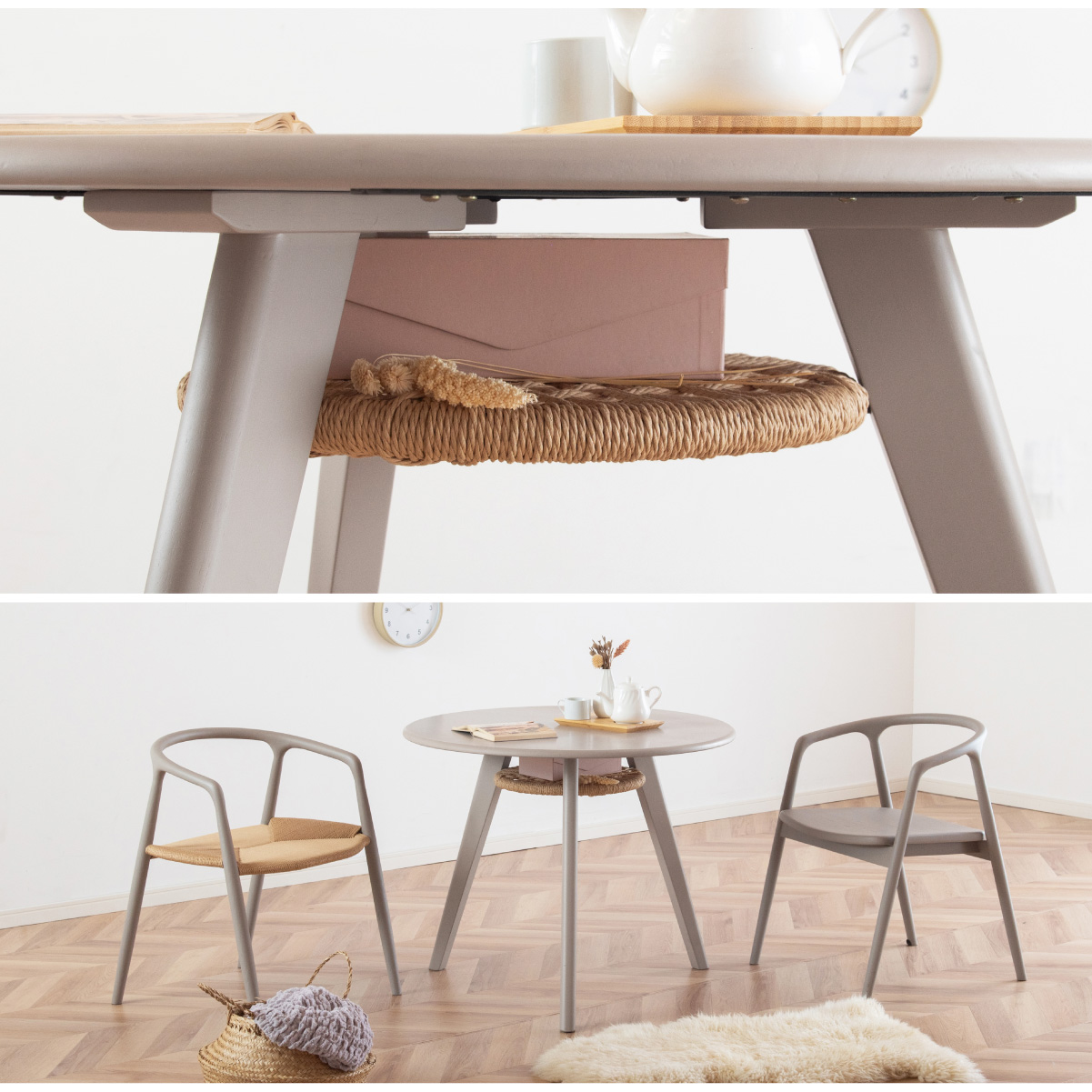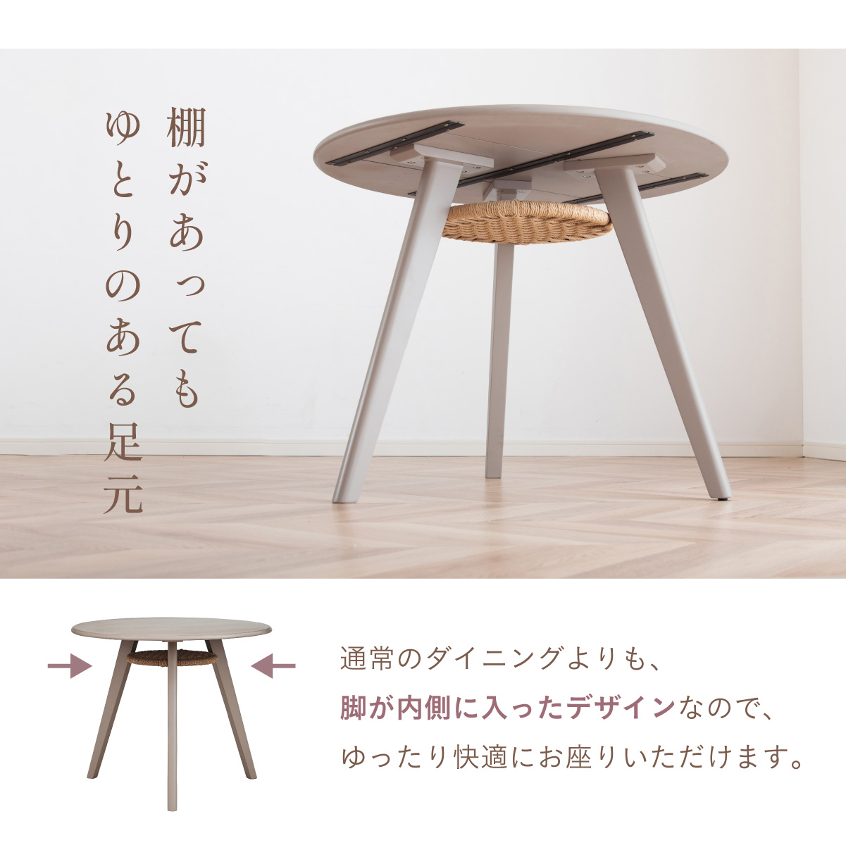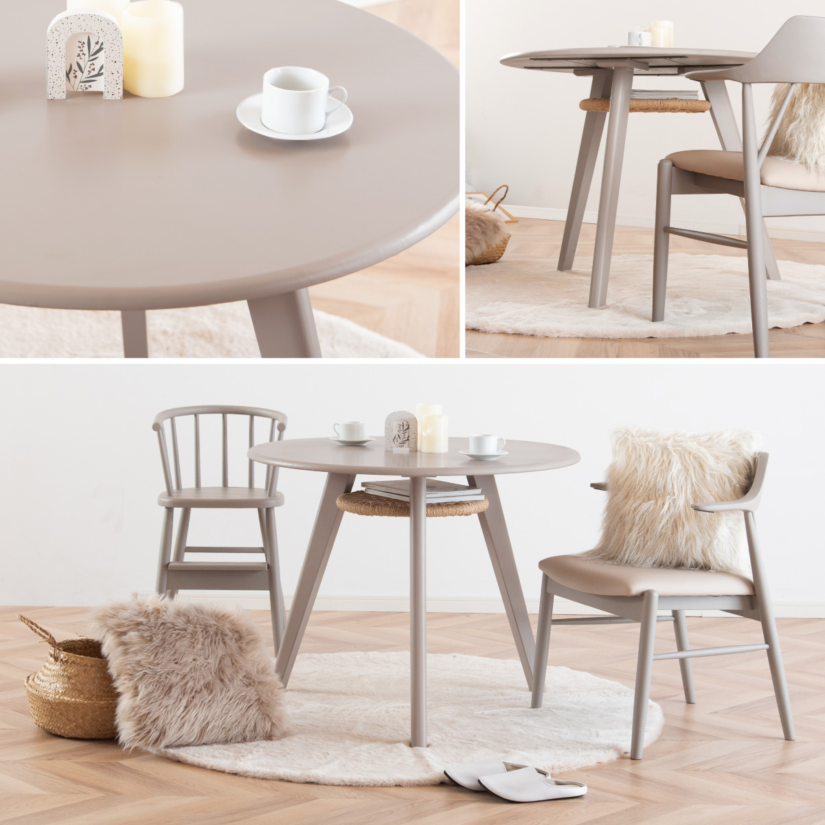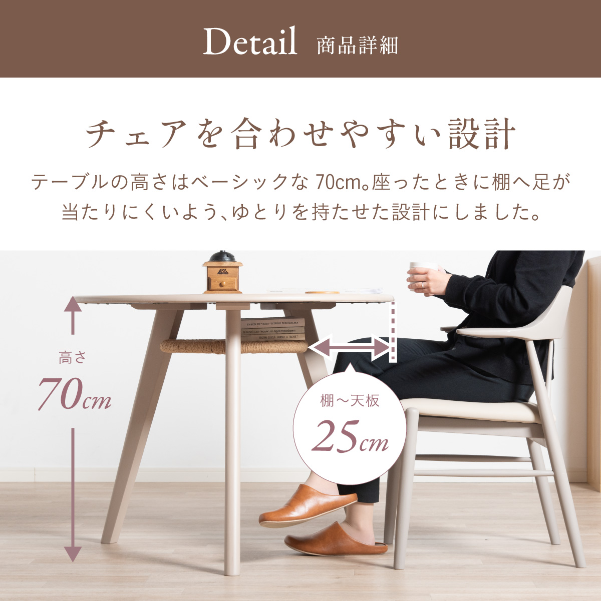 | Round Table Meyer(メイエル) 淡色空間を引き立てるグレージュラウンドテーブル 角のないラウンド形状で圧迫感を抑え、マットなグレージュ塗装が空間を上品に演出。 ペーパーコード棚に生活感をまとめて収納できます。 ■脚には耐久性に優れたラバーウッドを使用 ■木目が見えにくい塗装仕上げ ■汚れに強いウレタン塗装 ■職人が編む[ペーパーコード] 軽やかな印象を与えるペーパーコード棚は、自然素材ならではのやさしさと耐久性を両立。通気性が良く、長く使ってもへたりにくいのが特徴です。 ■detail ・チェアを合わせやすい設計 ・脚が内側に入ったデザインなので棚があってもゆとりのある足元 ・安心の角丸加工 ・金属製反り止め ・アジャスター付き ※こちらの商品はお客様組み立てとなります。 ※組立方や若干の個体差により、表記サイズと完成形サイズに多少の誤差が生じる場合があります。予めご了承下さい。 ※こちらは、テーブル単品の販売ページとなります。チェア等は付属しておりません。 ※熱いものを置くときは、直接置かないように注意してください。 ※防水ではございませんので、濡れた場合は放置せずすぐに拭き取ってください。 | |