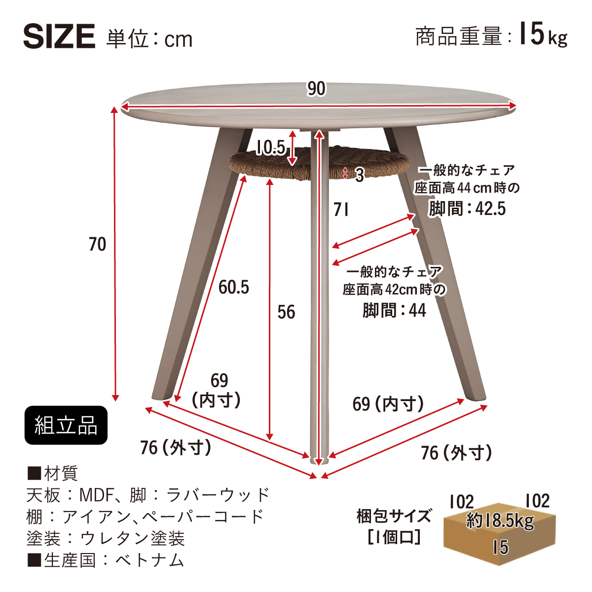 | 材質 | 天板:MDF 脚:ラバーウッド 棚:アイアン・ペーパーコード 塗装:ウレタン塗装 |