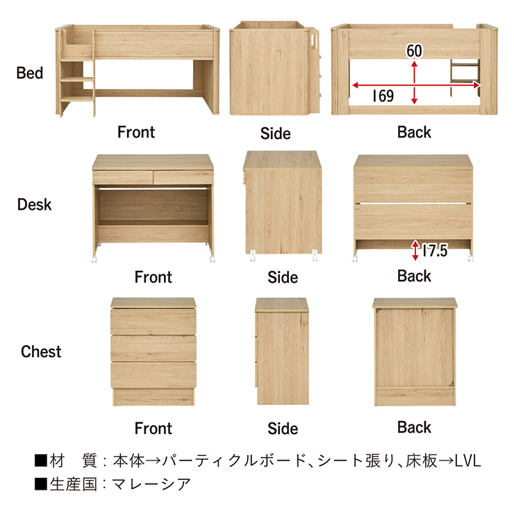 | 材質・素材 | 本体:パーティクルボード・シート貼り 床板:LVL |