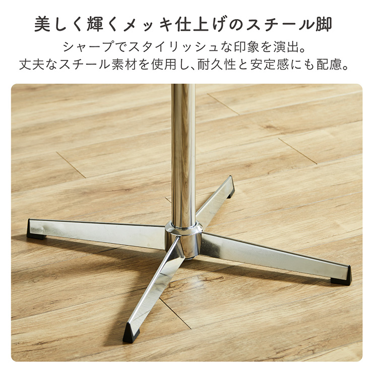 | 材質・素材 | 天板:MDF 支柱・脚:スチール(メッキ加工/WH粉体塗装) |