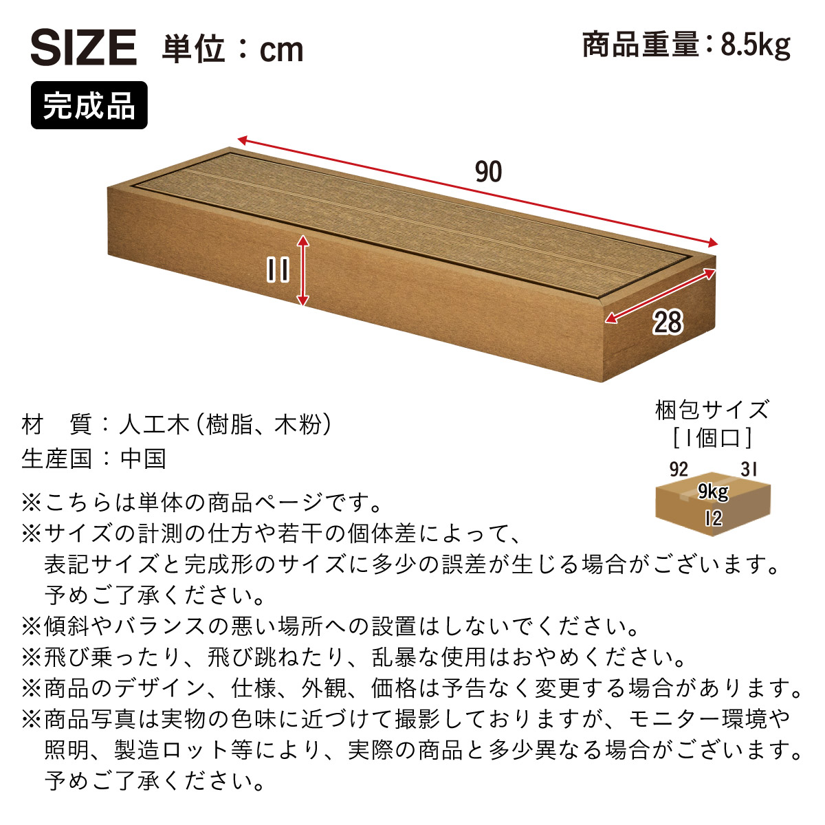 | 商品サイズ | W90 x D28 x H11cm(商品重量:8.5kg) |
