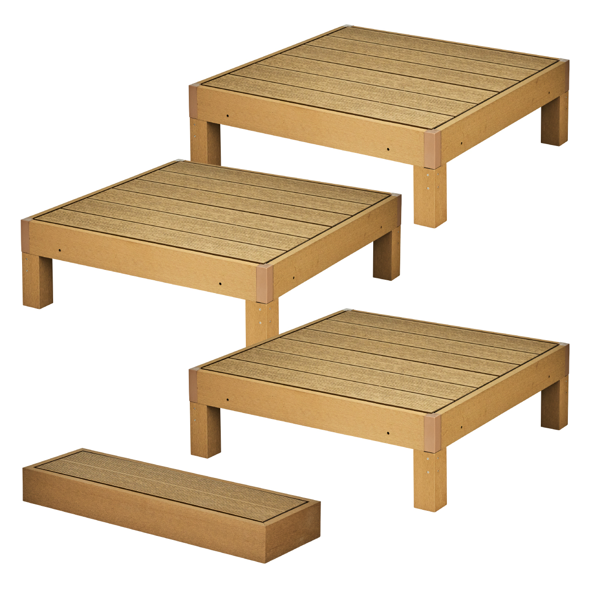 | 人工木ウッドデッキ Skaldar(スカルダー) デッキ本体3個+ステップセット お庭やベランダを、くつろぎの空間へ。 耐久性と美しさを兼ね揃えた人工木デッキ。 お住まいの雰囲気に合わせて選べる4色 ナチュラルもモダンにもフィットします。 ■人工木ならではの4つのメリット ・雨や汚れに強く、屋外でも安心 ・色あせしにくく美しさ長持ち ・サッと拭くだけ、簡単お手入れ ・虫がつきにくく、腐食の心配が少ない ■お手入れ簡単な「人工木」 人工木とは、木粉と樹脂(プラスチック)を混ぜ合わせて作られた高耐久素材です。 天然木のような風合いを持ちながら、腐食しにくい・変色しにくい・反りや割れが起こりにくい 天然木デッキの悩み 持続的なメンテナンスが必要です。 お手入れを怠ると、劣化や強度低下の原因になることも。 ・定期的な防腐処理 ・色あせや塗装の塗り直し ・湿気による腐食対策 ■床下補強でしっかり支える安心設計 負荷がかかる踏板の下に金属製補強材を採用。 強度を高める設計により、安定感と耐久性を向上。 長く安心して使える、しっかり構造です。 ■厚みのある土台でしっかり支える 踏板を支える土台部分に厚みを持たせることで、安定感と耐久性を向上させています。 たわみにくく、長く使える安心設計です。 ■脚部にも補強構造を採用 脚の内部には十字型の補強材を内蔵。 横揺れやぐらつきを抑え、硬く安定した構造を実現。 見えない部分までこだわっています。 ■雨や水に濡れても安心 人工木は水分を吸収しにくい素材 雨ざらしでも使いやすく、日常のお手入れも水洗いでOK。 屋外でも気兼ねなくお使いいただけます。 ■内部連結でしっかり固定 複数台を内側から連結固定できる設計。 ズレを防ぎ、安定した設置が可能です。 工具付きで取り付けもスムーズ。 ※屋外使用のため、経年による色味の変化は発生します。 ■レイアウト自在。理想のガーデンづくりに。 本体と同色・同素材で統一感アップ デッキ本体と同じカラー・同じ素材を採用。 後付けしても違和感がなく、美しく統一された仕上がりになります。 自由に組み合わせて、理想の空間へ 設置スペースやライフスタイルに合わせて、自由にレイアウトできるユニット設計。 横に広く並べて、開放感のあるデッキスペースに。 L字レイアウトも可能 ※掲載画像のレイアウトは一例です。 ※こちらは本体3点+ステップセットでの商品ページです。 ※こちらの商品はお客様組み立てとなります。 ※組み立て方や若干の個体差によって、表記サイズと完成形のサイズに多少の誤差が生じる場合がございます。予めご了承ください。 ※傾斜やバランスの悪い場所への設置はしないでください。 ※飛び乗ったり、飛び跳ねたり、乱暴な使用はおやめください。 ※商品のデザイン、仕様、外観、価格は予告なく変更する場合があります。 ※商品写真は実物の色味に近づけて撮影しておりますが、モニター環境や照明、製造ロット等により、実際の商品と多少異なる場合がございます。あらかじめご了承ください。 | |