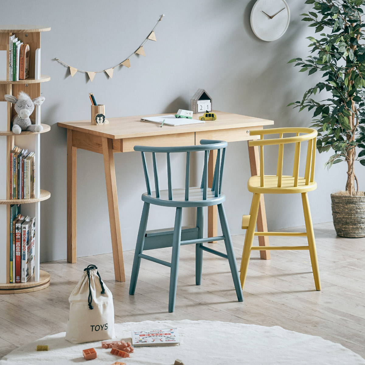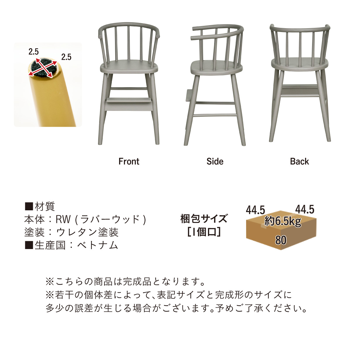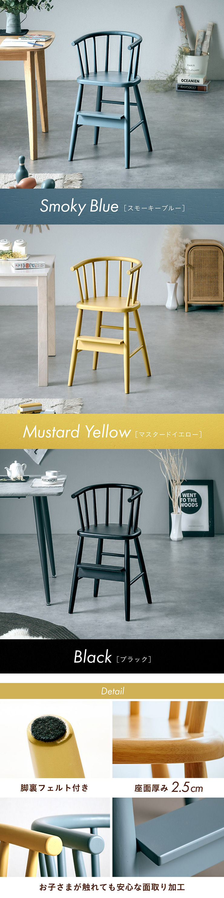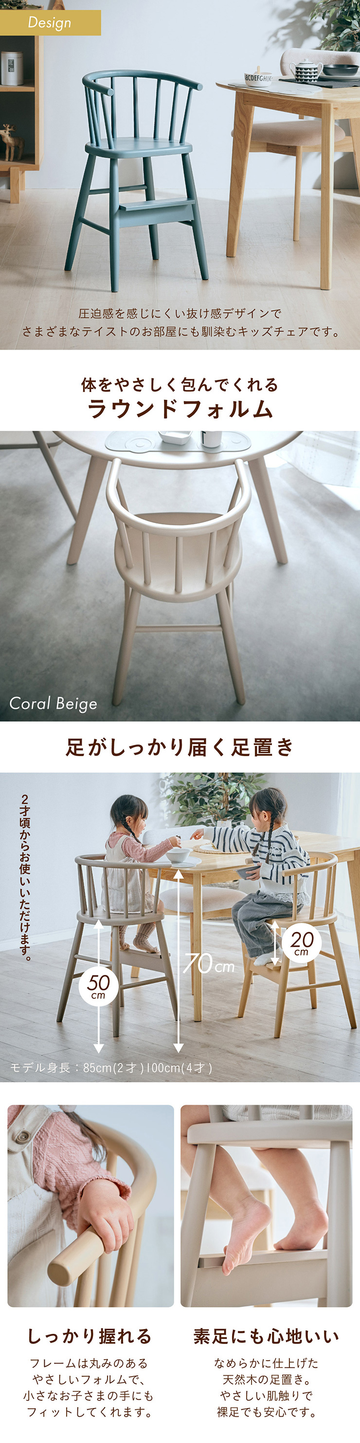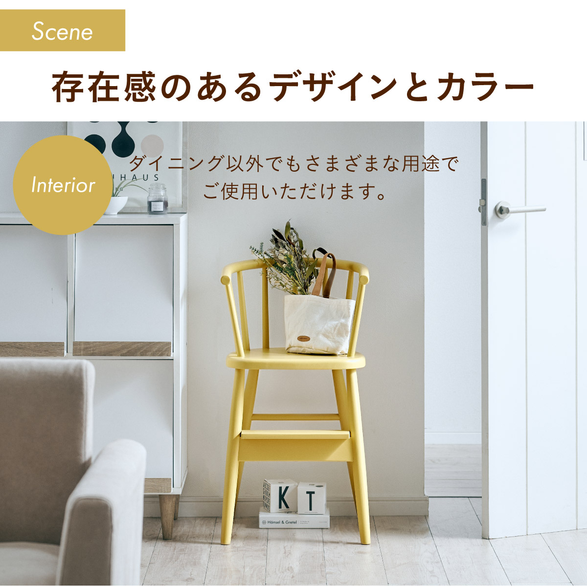 | キッズ家具をインテリアに Kids Chair Bake(ベイク) ■天然木の温かみあふれるラバーウッド使用 ■完成品でお届け ■体を優しく包んでくれるラウンドフォルム ■足がしっかり届く足置き ・2才頃からお使いいただけます。 ・しっかり握れる丸みのあるやさしいフォルム ・素足にも心地いい天然木の足置き ■ラバーウッド材xウレタン塗装 なめらかな肌触りが特徴のラバーウッド材に帳面を樹脂膜で覆うことで、傷や汚れがつきにくいウレタン塗装を施しました。 ■存在感のあるデザインとカラー ダイニング以外でもさまざまな用途でご使用いただけます。 ■detail ・脚裏フェルト付き ・座面の厚み2.5cm ・お子さまが触れても安心な面取り加工 ※こちらの商品は完成品となります。 ※対象年齢:2才頃~ ※組立方や若干の個体差により、表記サイズと完成形サイズに多少の誤差が生じる場合があります。予めご了承下さい。 ※こちらは、チェア単品の販売ページとなります。テーブル等は付属しておりません。 ※こちらの商品は天然木を使用しております。木の表情や風合いには個体差がございます。節など木の風合いを理由とした返品・交換は対象外となりますのでご了承ください。 | |