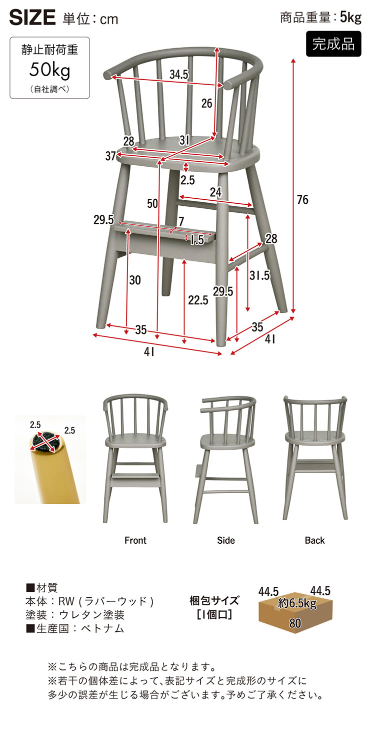 | 材質 | 本体:ラバーウッド 塗装:ウレタン塗装 |