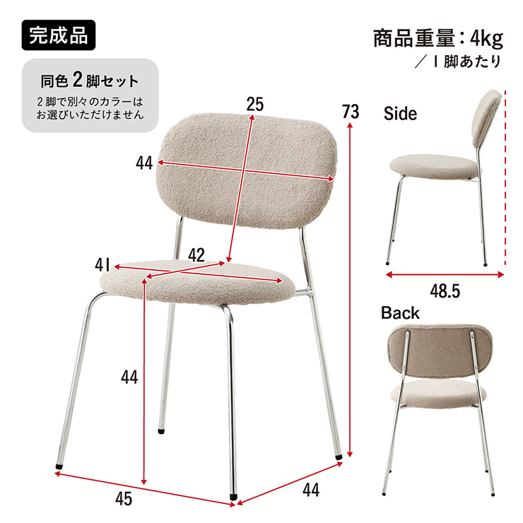 | 材質・素材 | ■テーブル 天板:MDF 支柱・脚:スチール(メッキ加工/WH粉体塗装) ■チェア 座面部材:合板 クッション材:ウレタン 張地:ポリエステル100% 表面加工:スチール(メッキ加工) |