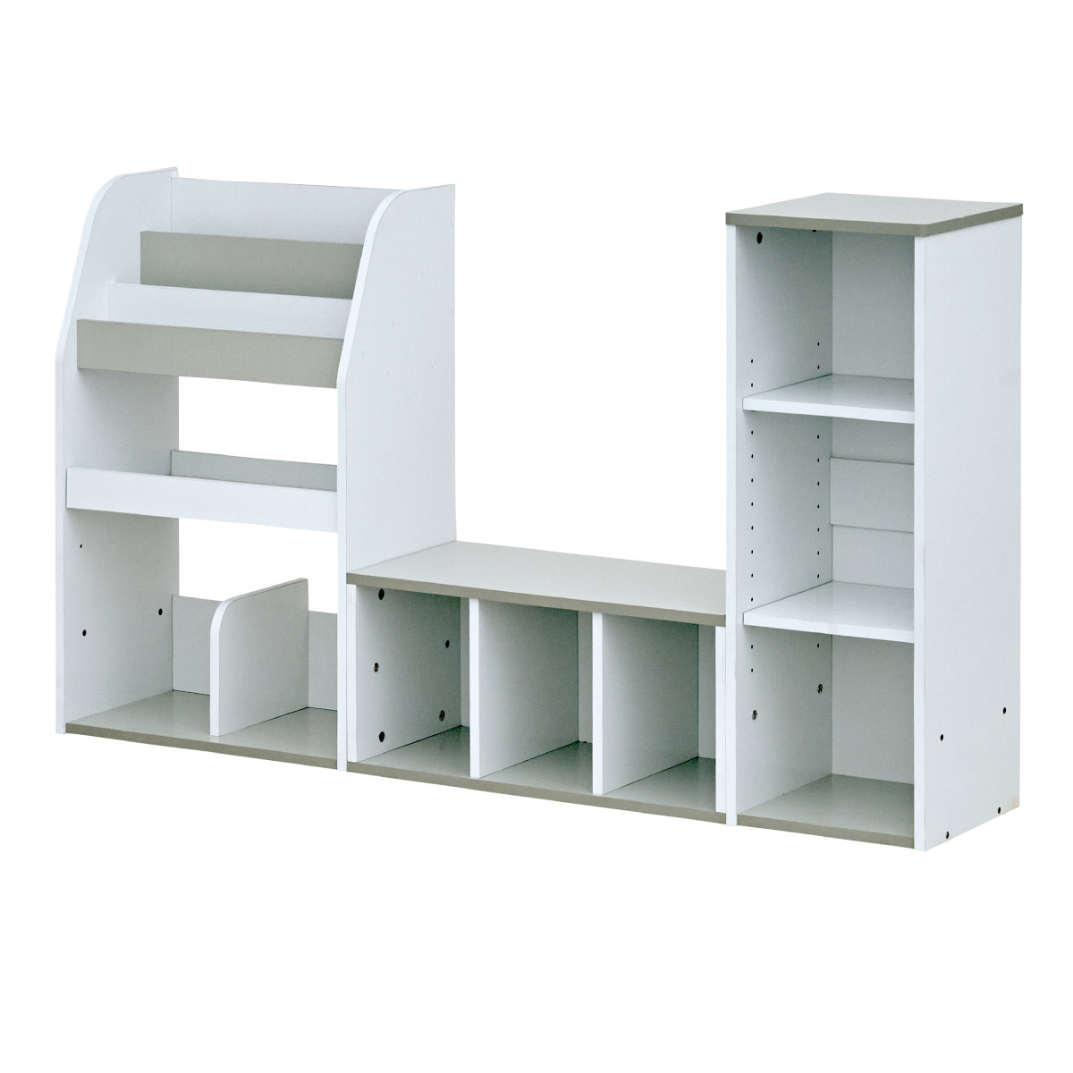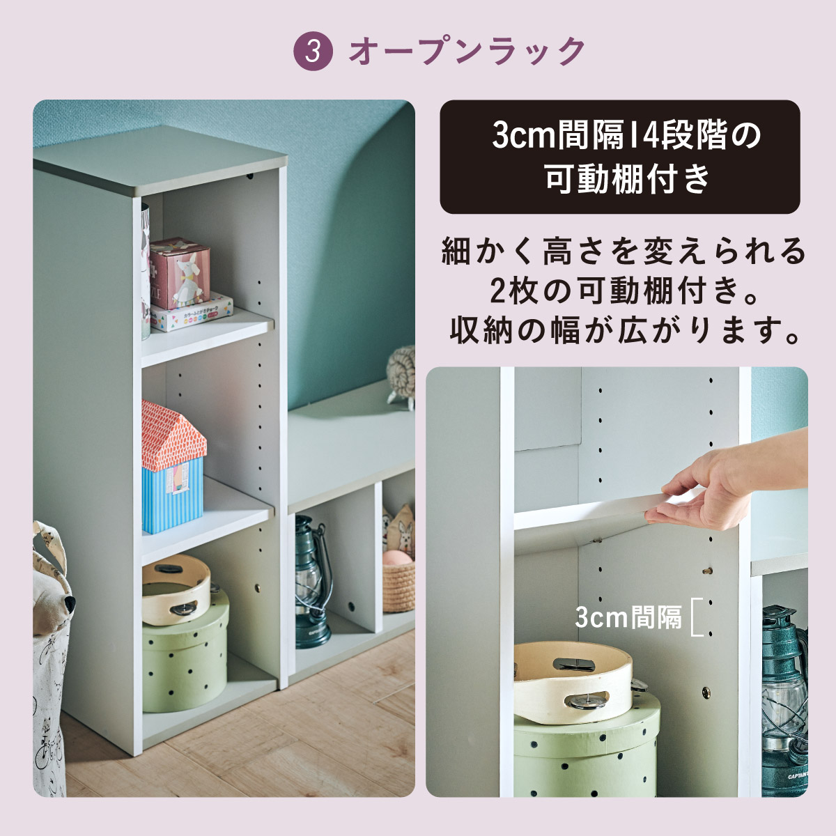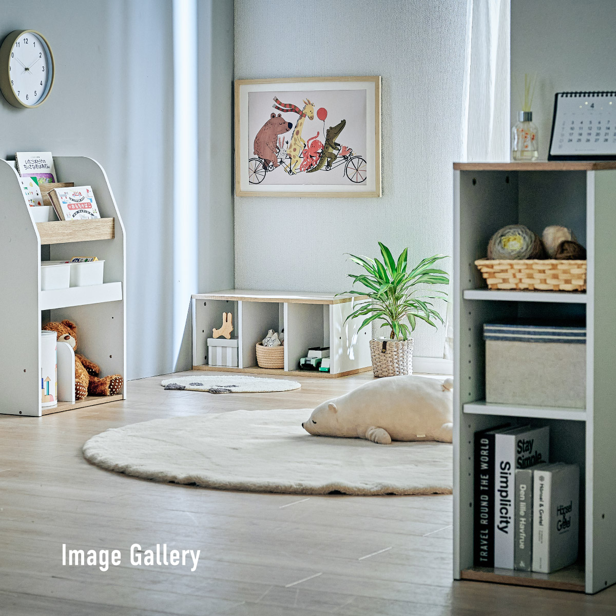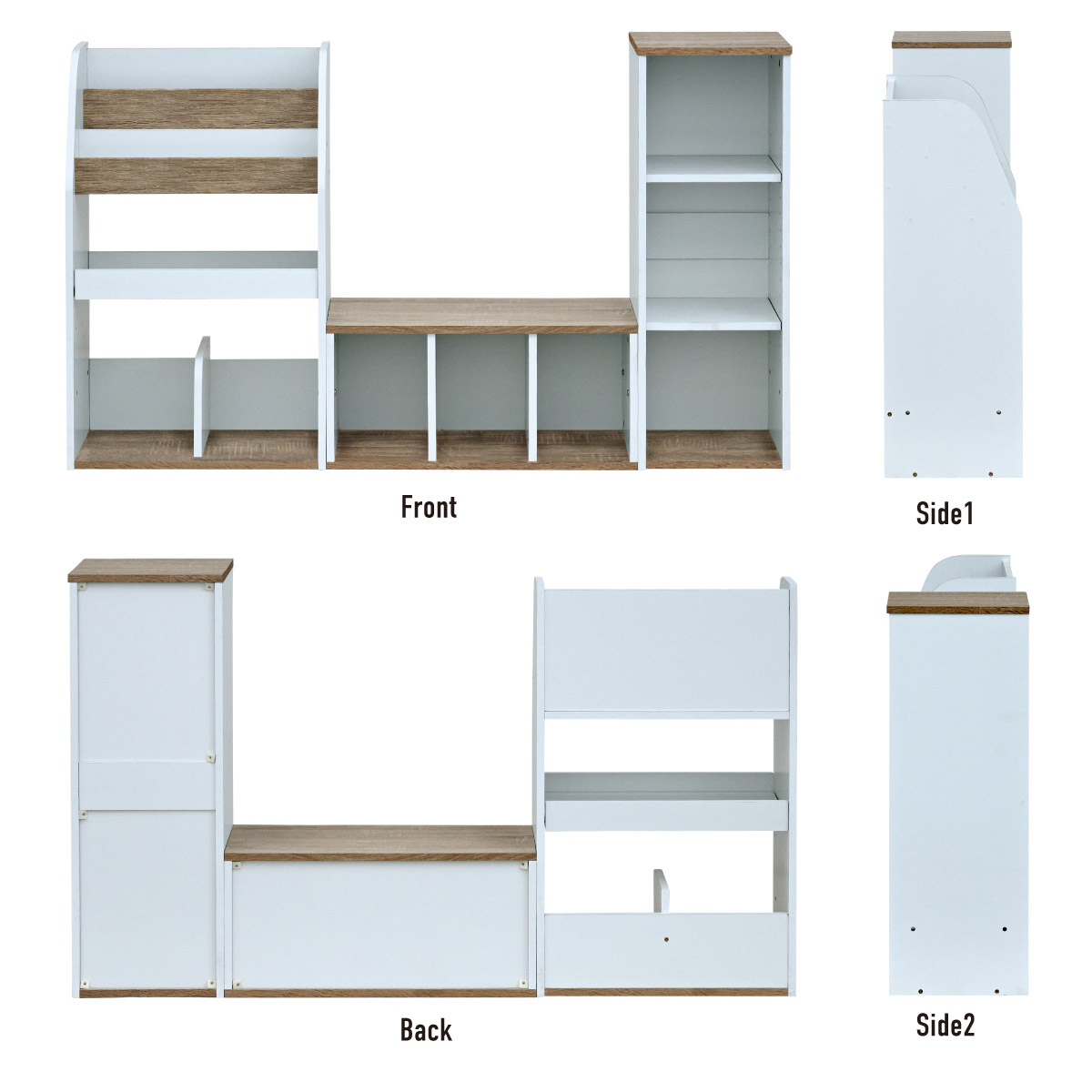 | すわれる絵本ベンチラック Eby(イビー) 成長に合わせて使い分けができる3点セット 絵本ラック・キッズベンチ・オープンラック お部屋に馴染むコンパクトデザイン すっきり片付く大容量収納 ■組み替え可能 お部屋のレイアウトに合わせて簡単組み立て ■分割仕様 分けて使えば場所を選ばずリビングにもやさしくなじむ絵本ラック ■絵本ラック 読みたい絵本がすぐに見つかる3段の絵本立て 表紙が見えるから、楽しく絵本を選ぶことができます。 前板の高さが異なるためさまざまなサイズの絵本の収納が可能です。 大きいおもちゃや重たいものもラクラク収納 下段は仕切り板付き・整理しやすいワイド収納 ■キッズベンチ ちょい掛けにちょうどいい低めのデザイン ■暮らしに合わせて使い方広がる 子供部屋で通学グッズの収納 リビングの収納ラックとして ■Safety 連結金具でしっかり固定。耐荷重80kkgの安心設計。 ■オープンラック 細かく高さを変えられる3cm間隔14段階の2枚の可動棚付き。 収納の幅が広がります。 ■商品詳細 ネジ穴隠しシール付き 床を傷つけにくいフェルト付き ※こちらの商品はお客様組み立てとなります。 ※ベンチを縦置きでのご使用時は連結固定ができません。 ※組み立て方や若干の個体差によって、表記サイズと完成形のサイズに多少の誤差が生じる場合がございます。予めご了承ください。 | |