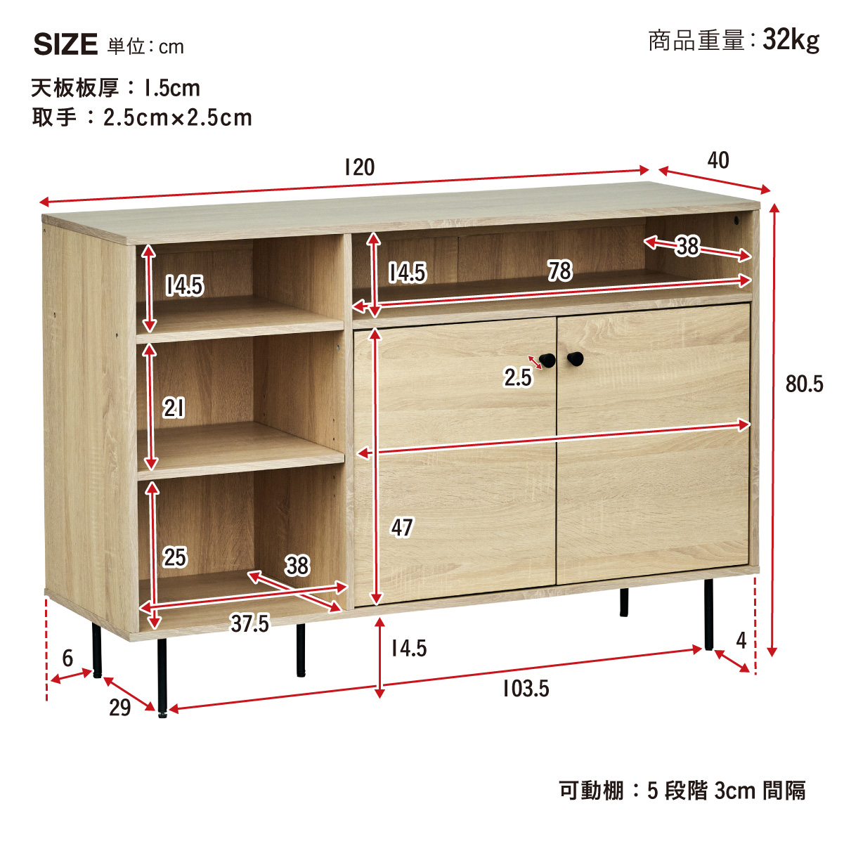 | 商品サイズ | W120 x D40 x H80.5cm(商品重量:32kg) |
