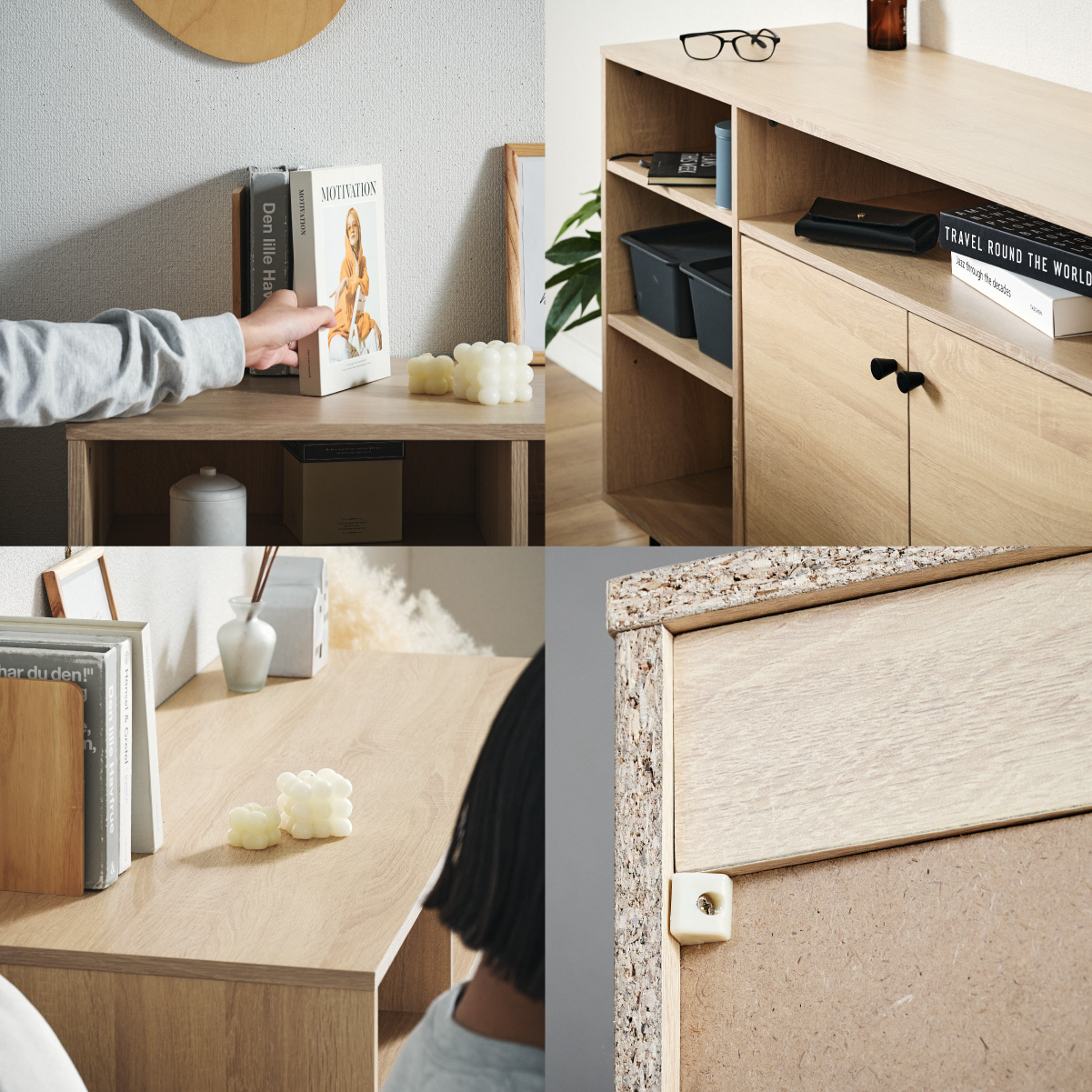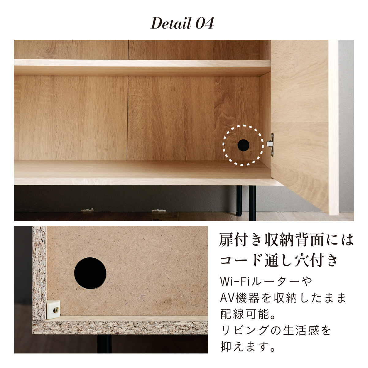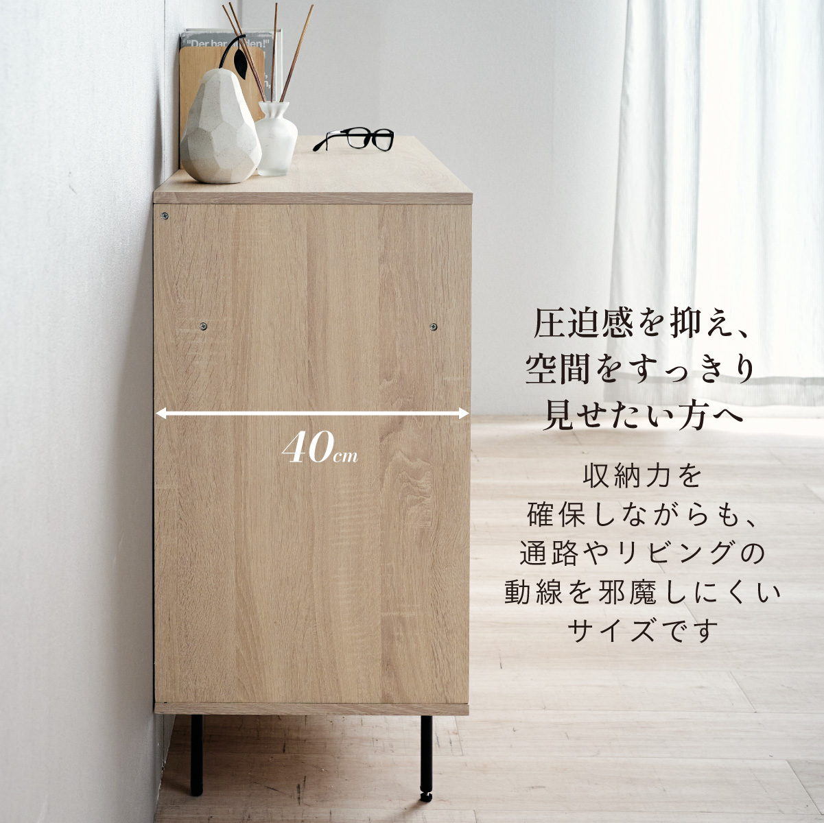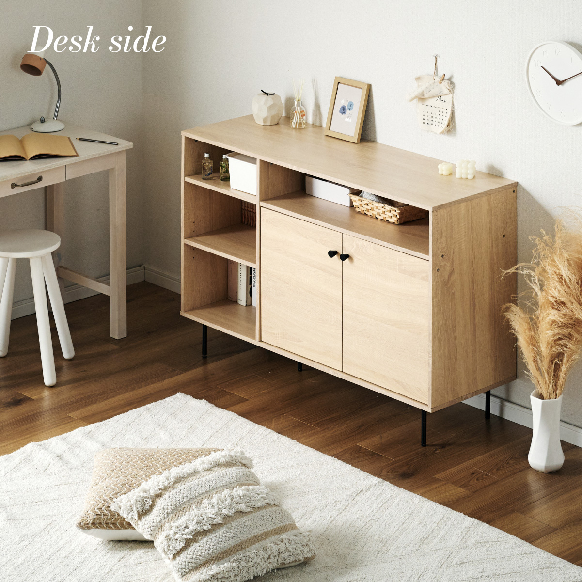 | 空間に溶け込むミニマルデザインサイドボード Tio(ティオ) 幅120cm 直線を基調としたシンプルなフォルム さまざまなインテリアに自然に調和します。 ■Function×Dedign 見せる・隠す・美しく整う収納 ・扉付き収納 ・オープン収納 ■オープン収納 お気に入りの雑貨や小物をディスプレイ感覚で収納 ■扉付き収納 生活感を出さず、雑多になりがちな物をまとめて隠せる ■Design1 ・無駄を削ぎ落としたフォルムのブラック取っ手。 木目の美しさを引き立て、サイドボード全体を引き締めます。 ・スムーズに開閉できるスライドレール。 落下防止ストッパー付きで、抜け落ちを防ぐ安心設計です。 ■Design2 直線的で無駄のない、ブラックの細身脚 床との間に空間をつくることで、サイドボード全体に圧迫感のない、すっきりとした印象を与えます。 ■Design3 ・脚はがたつきを抑えるアジャスター仕様。 床のわずかな凹凸もアジャスターで調整が可能。 ・お掃除ロボットが通れる脚高設計でお部屋のお掃除ラクラク ■広々とした天板は、ディスプレイにも作業にも最適 ディスプレイ棚としても、ちょっとした作業スペースとしても活躍する天板。 暮らしのシーンに合わせて、柔軟に使いこなせます。 下段2枚の棚部分は、可動棚となっており、3cm間隔5段階で調整が可能です。 収納物に合わせて調節が可能。 収納力を確保しながらも、通路やリビングの動線を邪魔しにくいサイズです。 圧迫感を抑え、空間をすっきり見せたい方におすすめです。 ■扉付き収納背面にはコード通し穴付き Wi-FiルーターやAV機器を収納したまま配線可能。 リビングの生活感を抑えます。 本体中央に補強脚を配置。 重さがかかっても、たわみにくい設計 ■OAK(オーク)調 明るくやさしい木目カラーが空間に自然に溶け込み、淡い色合いの中にブラック脚がアクセントとなり、ナチュラルさと上品さを両立します。 ■木目の美しさをリアルに再現した仕上げ 空間になじむナチュラルな風合いで、上品であたたかみのある印象を演出します。 ■どんな空間にもすっとなじむ 木のぬくもりとミニマルなデザインで、置く場所を選ばない収納家具 ※こちらの商品はお客様組み立てとなります。 ※組み立て方や若干の個体差によって、表記サイズと完成形のサイズに多少の誤差が生じる場合がございます。予めご了承ください。 | |