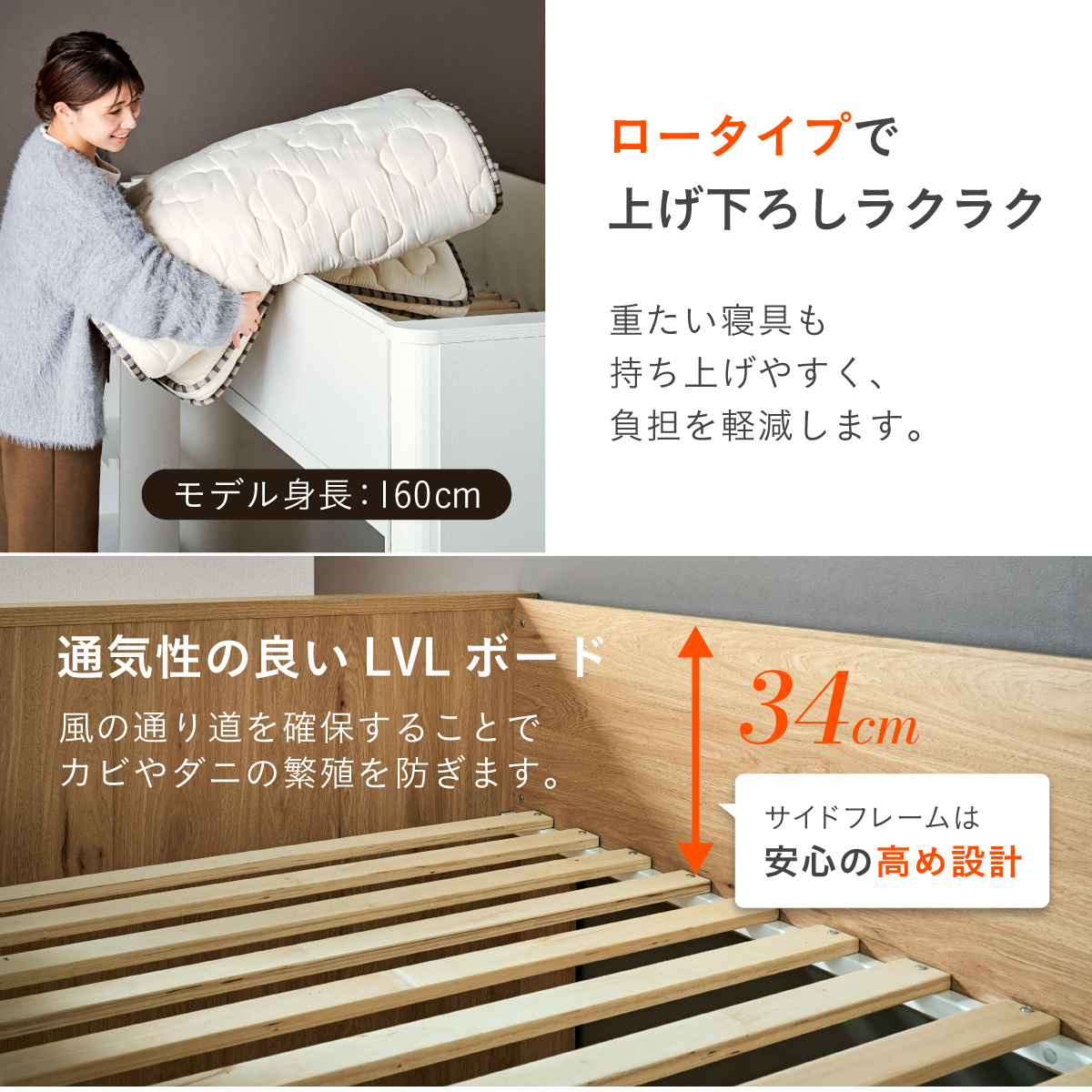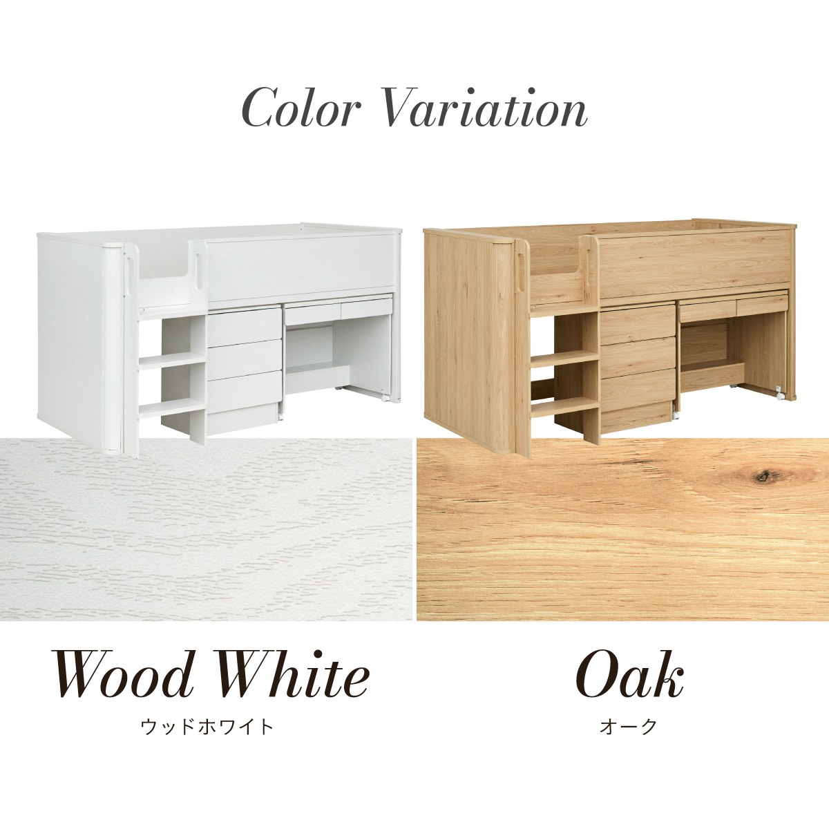 | カラー | ベッド:ウッドホワイト・オーク マットレス:ブラック |