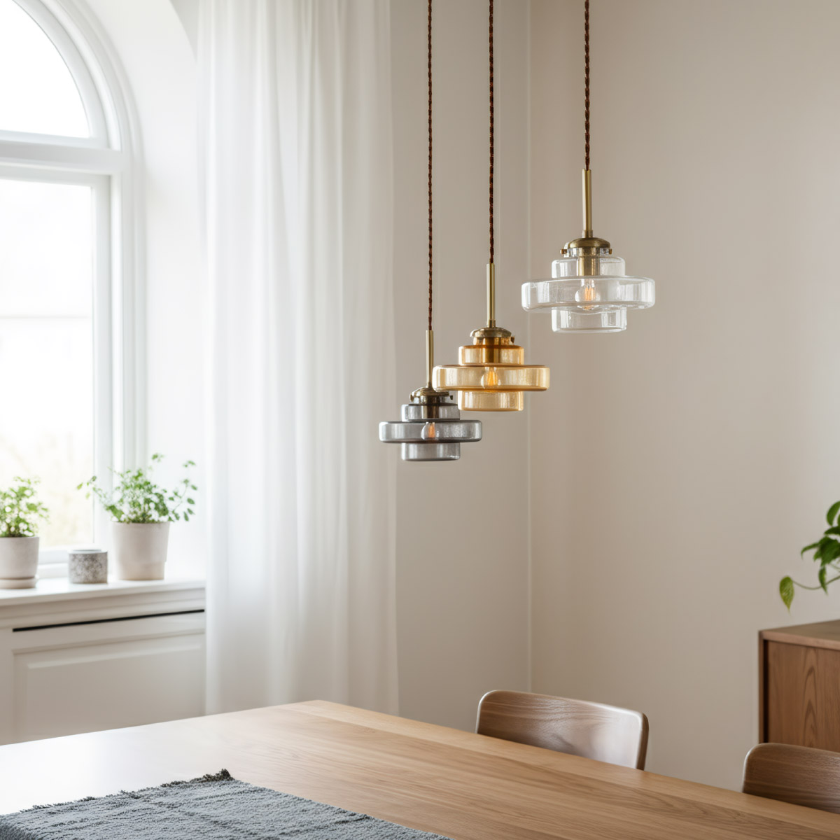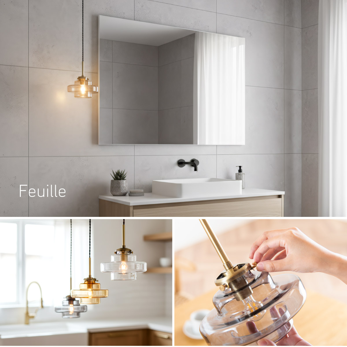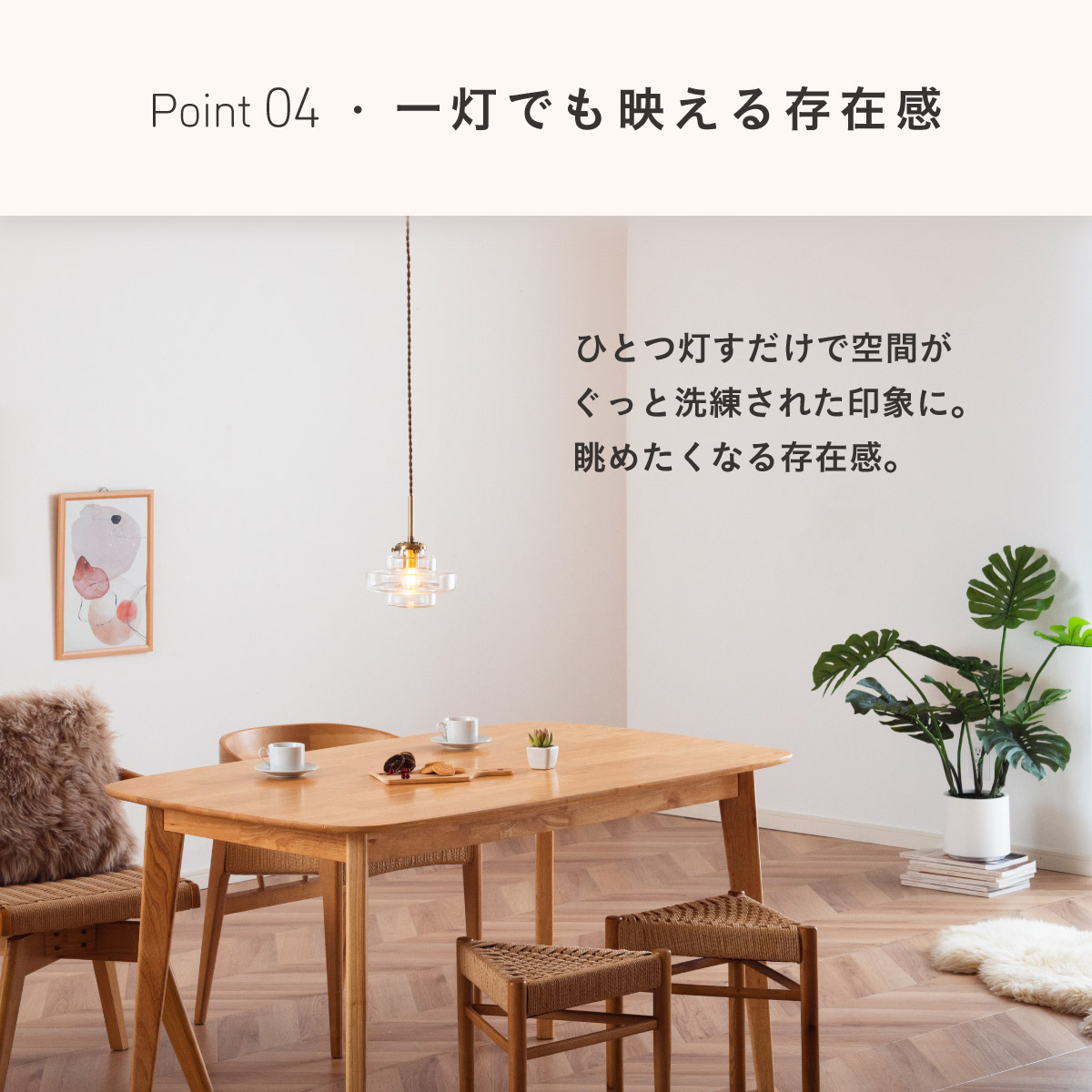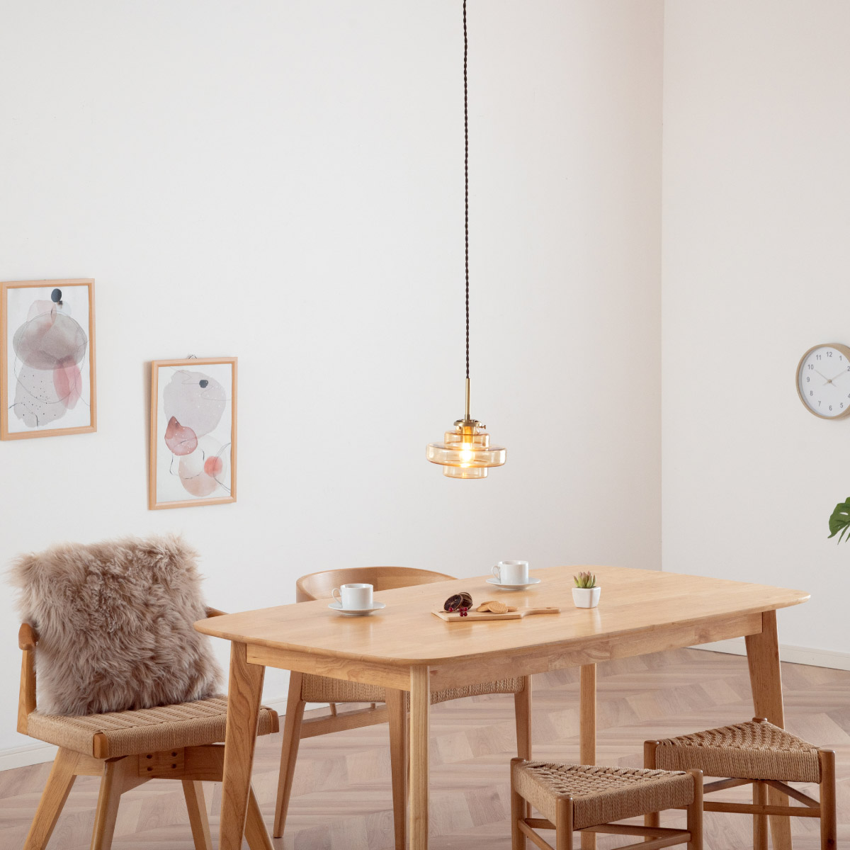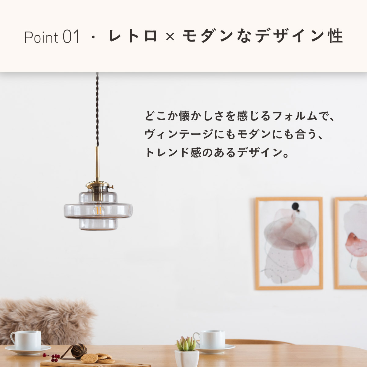 | LED電球専用 ペンダントライト Feuille(フィーユ) 電球セット 光を纏うようにやさしく灯る、ガラスシェード ミッドセンチュリーデザインを思わせるレトロなフォルムのペンダントライト。 光の表情を引き立てるよう計算されており、昼はインテリアのアクセントに、夜は幻想的な陰影を生み出します。 ■レトロxモダンなデザイン性 どこか懐かしさを感じるフォルムで、ヴィンテージにもモダンにも合う、トレンド感のあるデザイン。 ■コードの長さを調節可能 コード長さを自由に調節できるから、天井の高さに合わせてベストな配置が可能 ■LED電球で省エネ LED電球専用ライトだから、あかるさを確保しながら電気代も抑えられます。 ■1灯でも映える存在感 ひとつ灯すだけで空間がグッと洗練された印象に。眺めたくなる存在感 ■電球 ・口金:E17 ・定格消費電力:8W以下(※明るさ40W相当以下) ・定格電圧:100V ・この器具はLED電球専用です。 ・白熱電球や蛍光灯電球は使用できません。 ・電球は付属しておりません。 ・電球をご購入される前に、必ずロ金・ワット数のご確認をお願いいたします。 ・調光調色機能付き電球やリモコン付き電球などは対応可能です。 ■引掛けシーリング 一般的なご家庭に設置されている、下記のいずれかのシーリングがあれば、特別な工具や工事なしで簡単に取り付けが可能です。 ・角型引掛けシーリング ・丸型引掛けシーリング ・丸型フル引掛けシーリング ・フル引掛けシーリング ・引掛け埋込ローゼット ※シーリングが設置されていない場合は、別途電気工事が必要になります。 ※種類によっては、シーリングカバー内に完全に収まらない場合があります。ご了承ください。 ■取り付け場所 次のような天井には取り付けないでください。 ・突出部のある天井 ・たわみやすい天井、補強のない薄い天井(ベニヤ板、石膏ボードなど) ・傾斜した天井 ・凸凹のある天井 ※指定以外の場所に取り付けると、火災・落下などの原因になります。 調光機能がついた壁スイッチには取り付けできません。 ※火災の原因になるため、一般のスイッチに交換する取り付けないでください。 ■ダクトレールでもご使用可能〇 ダクトレールとダクトレール専用の変換プラグは別途ご用意ください。 ■LED電球を1灯付属しています ・クリプトン球40形相当 ・きらめきが広がるLED電球フィラメントタイプ ・光の広がり約290°全方向タイプ ・E17口金、電球色 ・メーカー:オーム電機 ※直径40mm以下の電球をご使用ください。 ※電気用品安全法(PSE法)および日本の安全規格に適合した製品です。 ※本製品のガラス部分には、製造工程上、小さな気泡やゆがみが生じる場合がございます。こちらはガラス製品特有の風合いであり、不良品ではございません。一点ずつ異なる表情をお楽しみいただければ幸いです。 ※屋内専用(屋外使用禁止) ※交流100V 50/60Hz 共有 ※次のような器具には使用できません。 調光機能のついた器具(100%点灯でも使用不可)・誘導灯、非常用照明器具・HIDランプ器具、水銀灯器具・断熱材施工器具1(SB・SGI・SG形表示器具など)・ランプと反射板の距離が狭い器具・直流電源 ※このほか使用器具の種類によって寸法的、熱的、その他の状況(リモコン機器のついた器具など)により使用できない場合があります。 ※ご使用になられる照明器具の構造によっては、放熱不良で短寿命となることがあります。 ※密閉器具でのご使用の場合、器具の寸法により、使用できない場合や寿命が短くなる場合があります。 | |