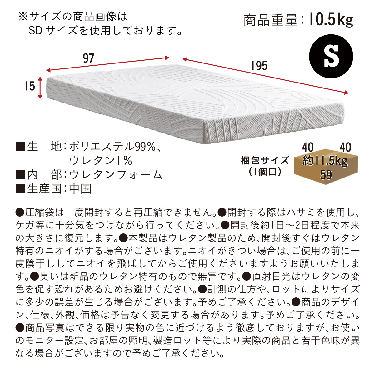 | 材質 | 本体:パーチクルボード・シート張り 床板:LVL 【マットレス】 生地:ポリエステル99%・ウレタン1% 内部:ウレタンフォーム |
