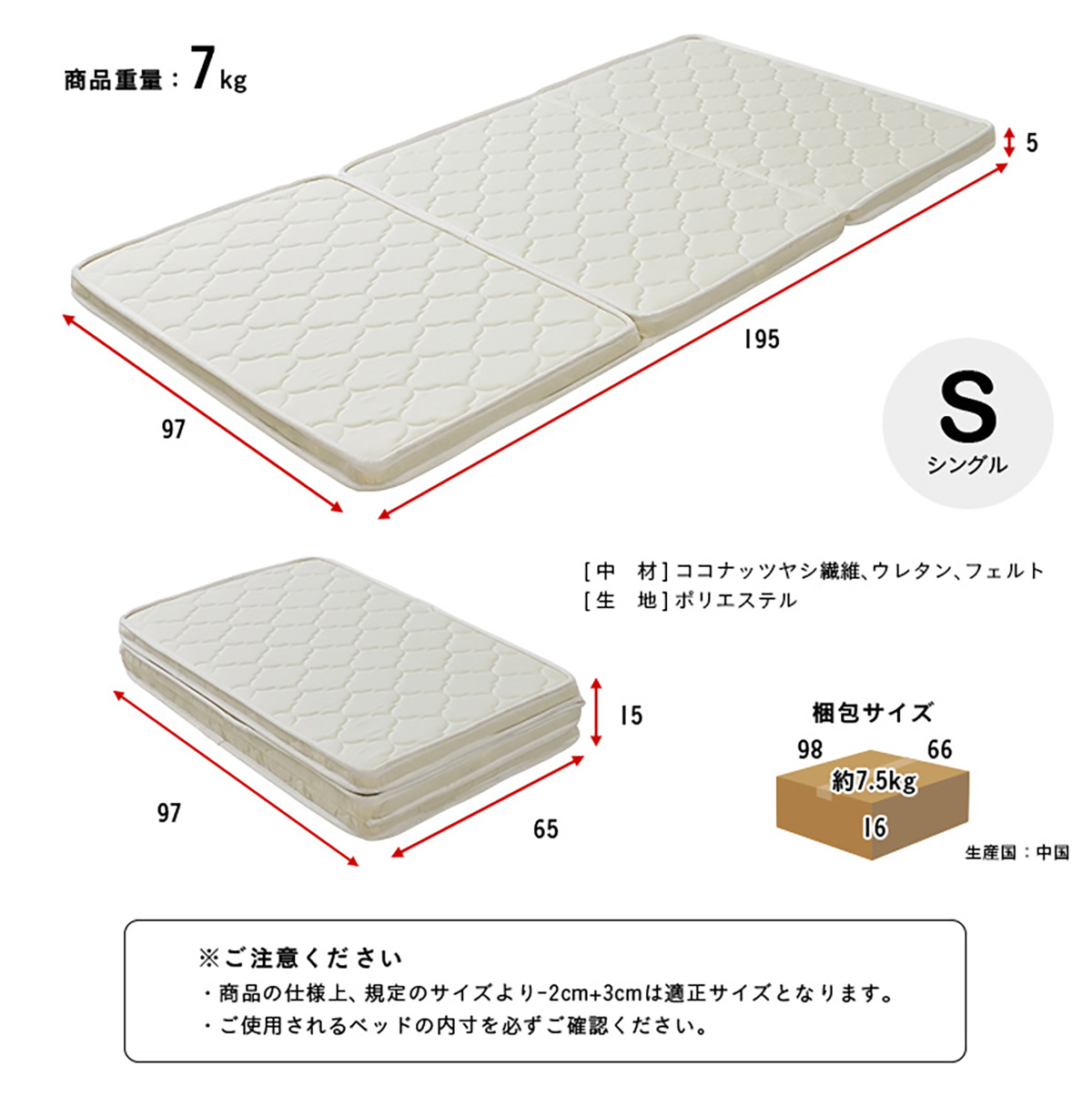 | 材質 | ベッド本体:MDF、シート張り(WALNUTは3Dシート、WOODNAはPUシート) すのこ:LVL マット:中材:ココナッツヤシ繊維・ウレタン・フェルト 生地:ポリエステル100% |