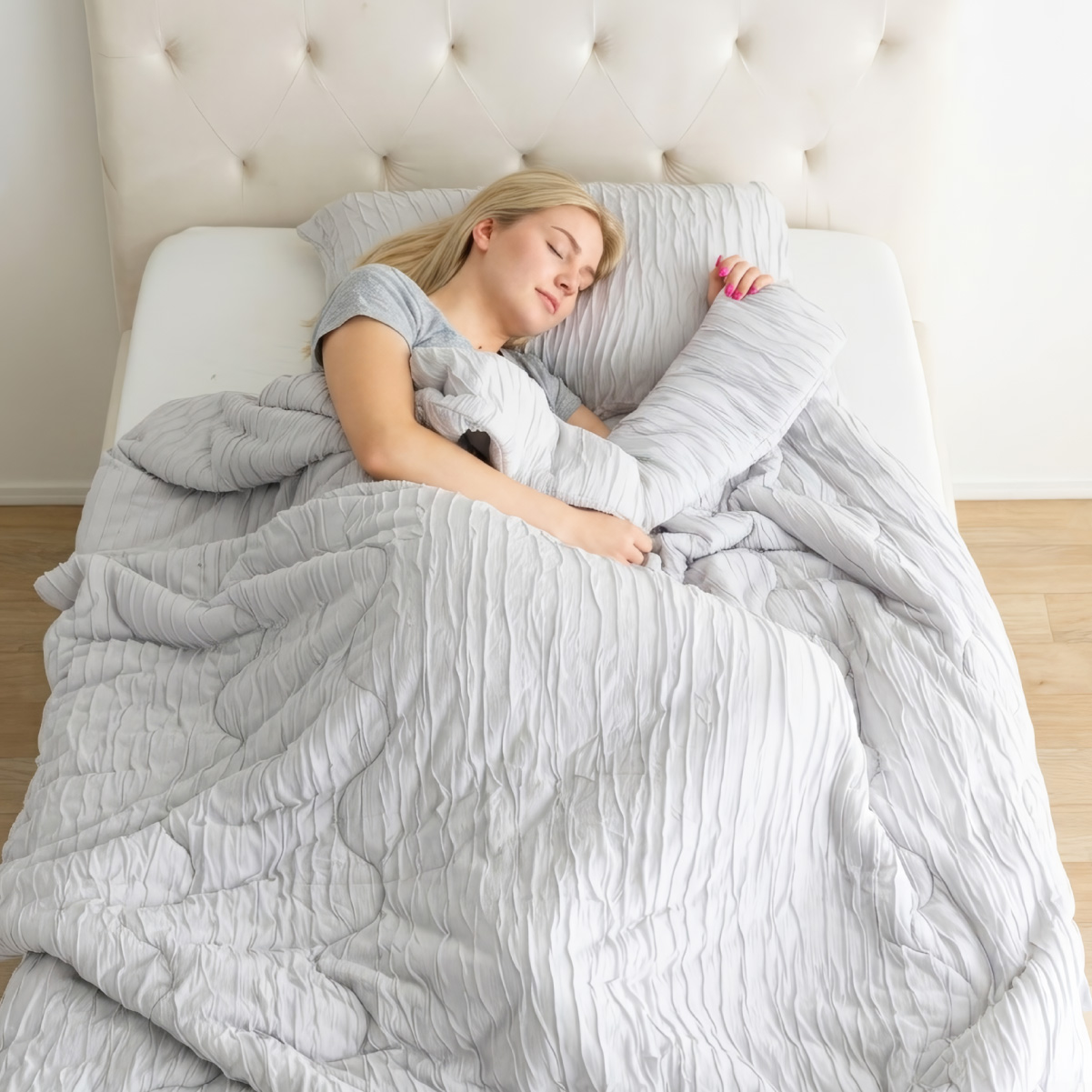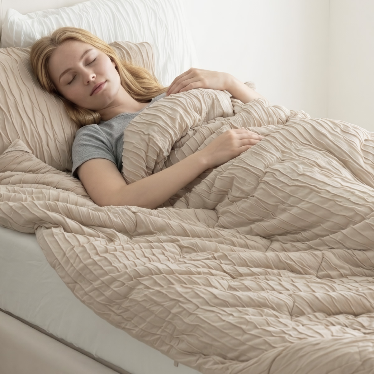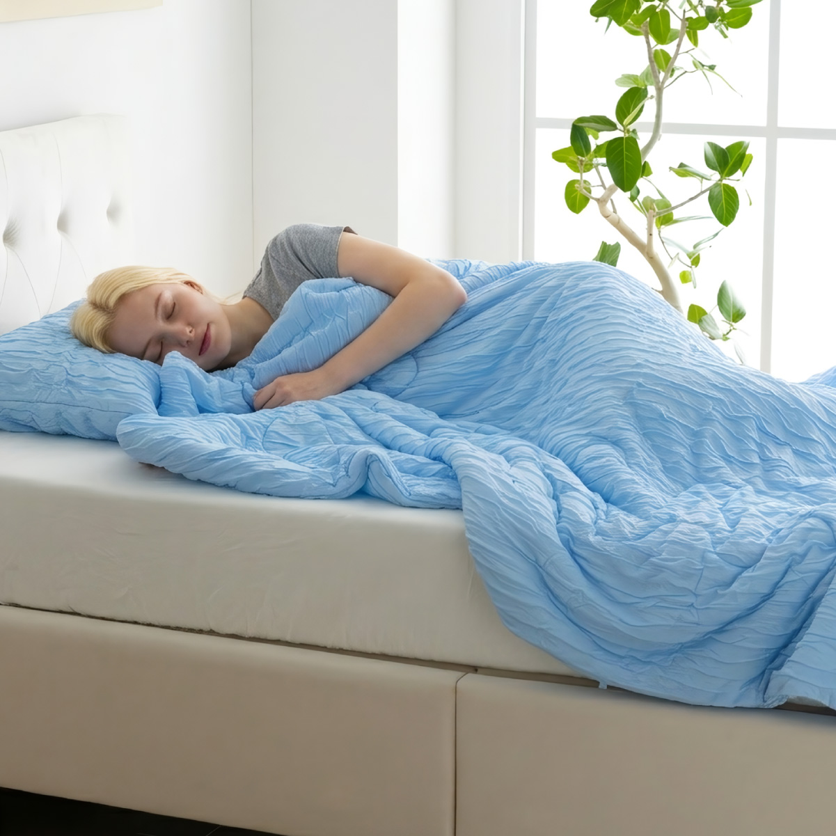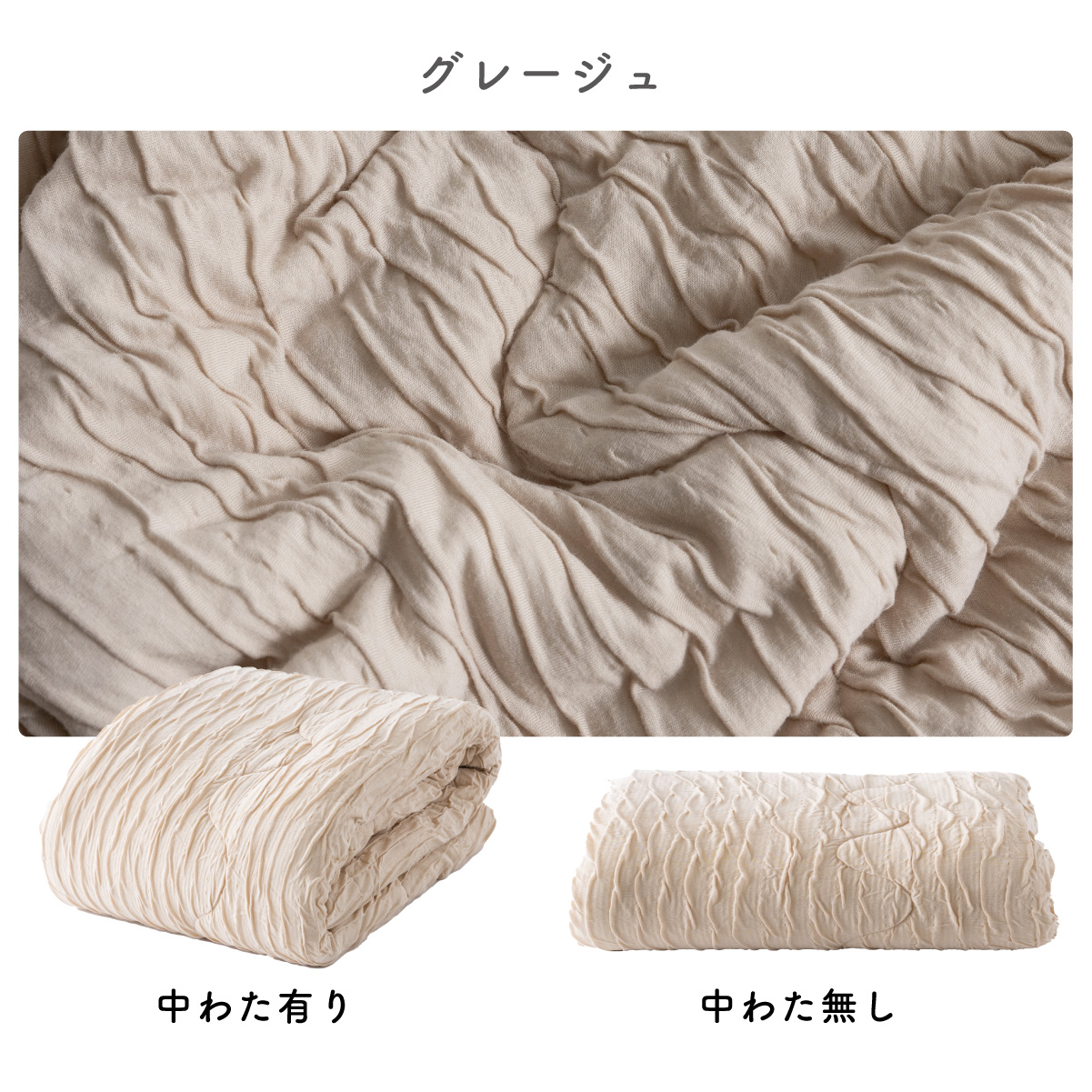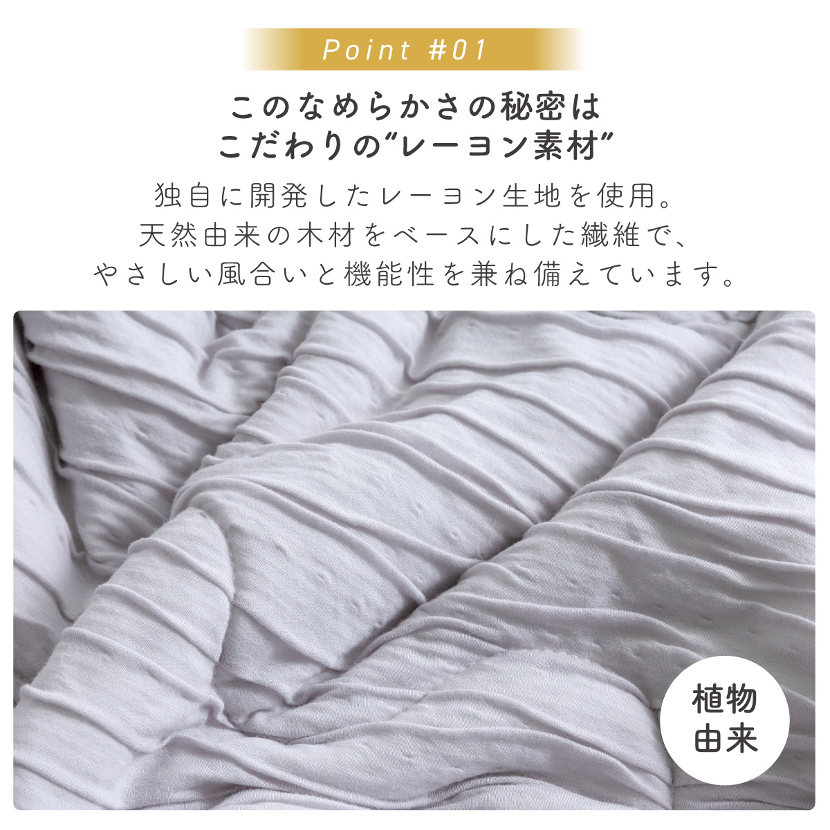 | 【NERUS正規品】一年中使える&自宅で洗える とろとろケット Asheri(アシェリ) シングルサイズ やさしく包まれるような、心ほどける寝心地。 なめらかさ・やわらかさ・弾力感を兼ね揃えた新しい掛けふとんが誕生しました。 とろけるような質感で、肌に触れるたびにリラックスできる心地よさ。 ■とろとろケットに、中わたを使わない新仕様 心地よいなめらかさはそのまま、中わたを省くことで、より軽く、さらに通気性のよい仕上がりに。 ■軽くて楽・ムレにくい・乾きやすい [通常との比較]中わた有りタイプと比べて、すっきりとした薄さで軽快に使えます。 ■とろけるケットの魅力 なめらかでやわらかく、心地よい肌ざわり ご家庭の洗濯機で丸洗いOK 季節を問わず使える快適設計で一年中使える ■とろけるような質感 肌にやさしくなじむ、極上のフィット感 しっとりとなめらかな生地が心地よく、さらりとした使い心地で蒸れにくく快適。 ■[Point1]このなめらかさの秘密はこだわりの"レーヨン素材" 独自に開発したレーヨン素材を使用。 天然由来の木材をベースにした繊維で、やさしい風合いと機能性を兼ね揃えています。 ■レーヨン素材の特長 ・シルクのような上品な光沢と軽やかさ ・優れた吸湿性と通気性で快適な使い心地 ・なめらかな肌あたりで季節を問わず活躍 ・静電気が起きにくく、ホコリがつきにくい しっとりとした質感と柔らかさで、肌に寄り添うようなやさしい寝心地を実現。 保湿性と通気性のバランスにも優れています。 ■NERUSオリジナル設計のレーヨン糸 一般的なレーヨンに比べて凹凸を抑えた設計により、なめらかでしっとりとしたやさしい肌ざわりを実現しました。 さらに耐久性にも配慮し、長く快適に使える仕上がりです。 ほどよい吸湿・放湿性があるため、湿気対策や乾燥対策にも。 ■[Point2]高密度だからこそ叶う、極上の肌ざわり。 一般的な生地密度150〜190g/㎡を超える高密度220g/㎡で、驚くほどなめらかな触り心地を実現。 包み込まれるような柔らかさは、一度触れるとやみつきに。 ■[Point3]寝返りしても、はだけにくい。とろとろケットのこだわり製法 寝返りをしてもはだけにくい理由は、NERUS独自のオリジナル製法にあります。 縦方向に施したシャーリングが身体の動きにやさしく沿い、快適なかけ心地と寝心地をキープします。 ■[Point4]ふんわり、羽毛のようなやさしい柔らかさ 中わたには、羽毛のようなやわらかさとあたたかさを兼ね備えた、NERUS独自開発の「NERUSもちもちわた」を使用しています。 動物性繊維を使用していないため、ホコリが出にくく、気になるニオイも抑えられます。 さらに洗濯できるので、清潔にお使いいただけます。 ■[Point5]もっちり、弾力のあるやさしい肌ざわり "とろけるレーヨン"と"NERUSもちもちわた"を組み合わせ、もっちりとした心地よい肌ざわりに。 なめらかな生地が肌にやさしくなじみ、さらっとした使い心地で、暑い季節も快適にお休みいただけます。 ■[Point6]オールシーズン、心地よく使える一枚 春夏秋はさらっと快適に、冬はほんのり暖かく。 季節を問わず、一年を通してお使いいただけます。 出し入れの手間が少ないので、収納の負担も軽減できます。 ※感じ方には個人差があり、室温や使用環境によって異なります。 ■[Point7]洗濯機で洗えるから、汗ばむ季節も気持ちよく使える ポリエステル綿を使用しているため、お手入れ簡単。 洗濯機で洗えるので、いつでも清潔。 お子さまのいるご家庭にも取り入れやすい一枚です。 ※お洗濯の際は洗濯ネットをご使用ください。 ■[Point8]布団カバーなしでも、心地よく使える ご家庭で丸洗いできるので、布団カバーなしでもそのままお使いいただけます。 もっちりとしあ肌ざわりを、ぜひ直接感じてください。 ■[Point9]収納袋付きで、持ち運びもスマート 専用の収納袋がセットになっているので、コンパクトにまとめてすっきり収納できます。 旅行や帰省、お泊まりの持ち運びにも便利です。 まるで雪に包まれるようなふんわりやさしい肌ざわり。 素肌がよろこぶ、ふわふわのぬくもりをぜひ実際に手に取ってご体感ください。 ※サイズ表記は生地寸であり、仕上がり寸ではございません。若干の誤差が生じる場合がございます。あらかじめご了承ください。 ※直射日光の当たる場所・高温多湿な場所・火気の近くでのご使用・保管は避け、風通しの良い場所でご使用ください。 ※商品の開封直後に、においが気になる場合は風通しの良い日陰でしばらく陰干ししてください。 ※湿ったまま放置するとカビの原因となりますのでご注意ください。 ※商品写真はできる限り実物の色に近づけておりますが、お使いのモニター環境、照明、製造ロット等により実際の商品と若干色味が異なる場合がございます。予めご了承ください。 ※計測方法や製造ロットによりサイズに誤差が生じる場合があります。 ※商品到着後すぐに開封し、商品に不具合等ないかご確認ください。 