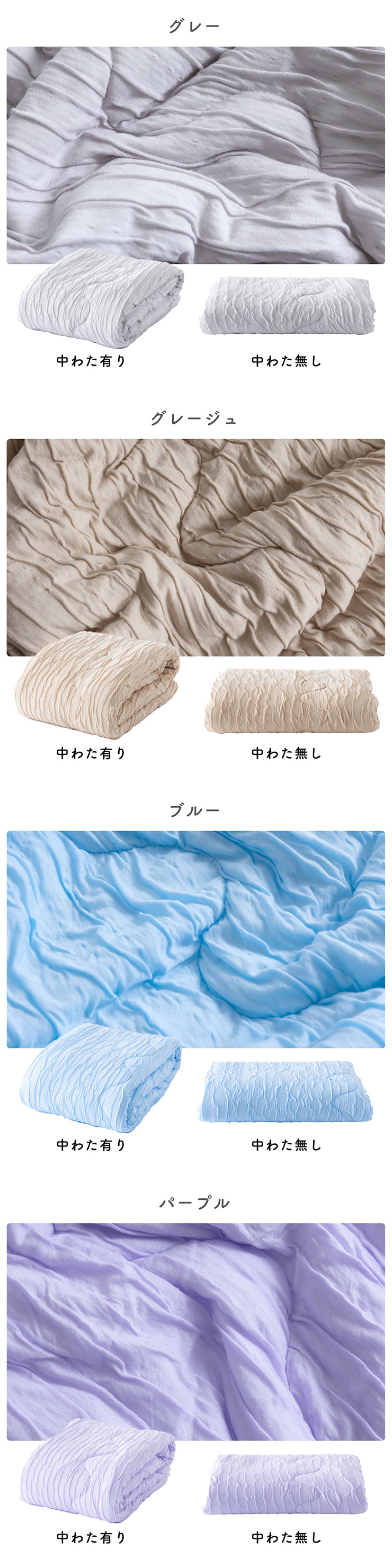 | バリエーション | タイプ:中わた有り・中わた無し カラー:ホワイト・グレー・グレージュ・ブルー・パープル |