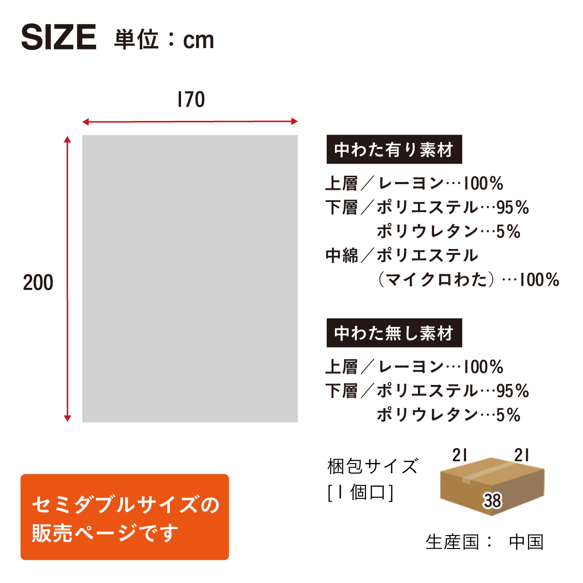 | 材質・素材 | 【中わた有り】上層:レーヨン100% 下層:ポリエステル95%・ポリウレタン5% 中層:ポリエステル(マイクロわた)100% 【中わた無し】上層:レーヨン100% 下層:ポリエステル95%・ポリウレタン5% |